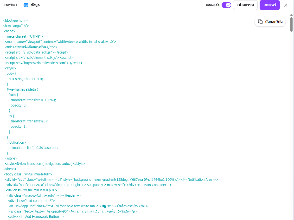 AI จะวิเคราะห์คำสั่งและสร้างโครงสร้างของโปรแกรมตามแนวคิดที่ระบุ ![]() 3. ให้ AI สร้างโค้ดตัวอย่าง เมื่อระบบประมวลผลคำสั่งแล้ว Canva AI จะสร้างโค้ดตัวอย่างของโปรแกรม ซึ่งมักอยู่ในรูปแบบของ - HTML - CSS - JavaScript โค้ดที่ได้สามารถนำไปทดลองใช้งานหรือปรับแต่งเพิ่มเติมได้ตามต้องการ 4. ปรับแต่งและพัฒนาเพิ่มเติม หลังจากได้โค้ดต้นแบบแล้ว ผู้พัฒนาสามารถนำไปปรับปรุงเพิ่มเติม เช่น