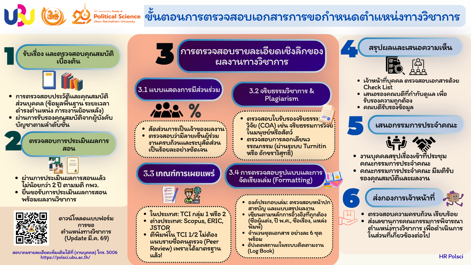 4. บทสรุปและแนวทางเรียนรู้สู่อนาคต การจัดการความรู้ (KM) ครั้งนี้พิสูจน์ให้เห็นว่า "งานบุคคล" สามารถยกระดับเป็น "Digital HR Support" ได้ โดยการใช้ AI เข้ามาช่วยในงานที่ต้องการความแม่นยำสูง และใช้ความคิดสร้างสรรค์ผ่านสื่ออินโฟกราฟิกเพื่อการสื่อสารที่มีประสิทธิภาพ ข้าพเจ้าหวังว่าแนวปฏิบัตินี้จะเป็นต้นแบบให้เพื่อนร่วมวิชาชีพนำไปปรับใช้ เพื่อลดความผิดพลาดและเพิ่มความเร็วในการขับเคลื่อนตำแหน่งทางวิชาการของบุคลากรในมหาวิทยาลัยสืบไป ธัญรินทร์ ใจแจ้ง บุคลากรปฏิบัติการ สังกัดสำนักงานเลขานุการ คณะรัฐศาสตร์ มหาวิทยาลัยอบุลราชธานี ไฟล์แนบ : ถอดบทเรียนการขอตำแหน่งทางวิชาการ ตามเกณฑ์ ฉบับที่ 3 ปี 68 |