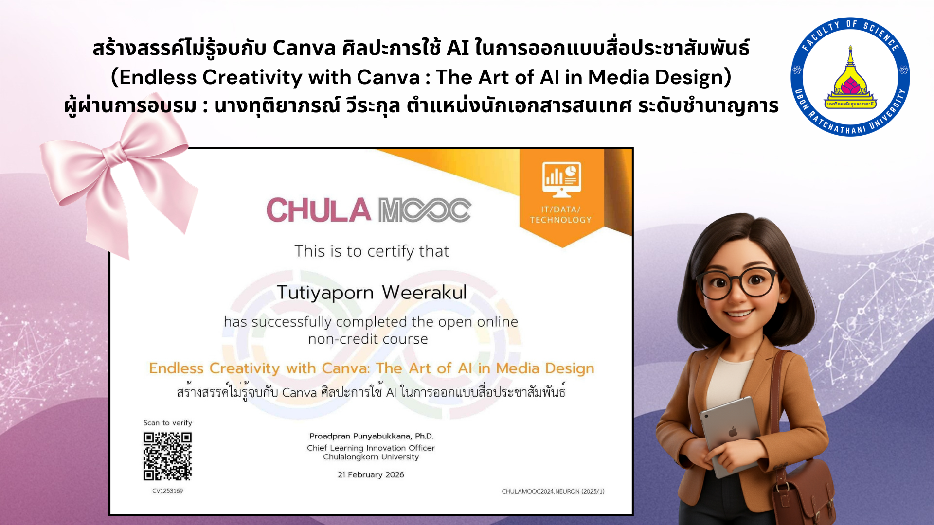post: 2026-03-08 by: ทุติยาภรณ์ วีระกุล Views:45 กลุ่ม: การคัดเลือกบุคคลเข้าศึกษาในมหาวิทยาลัยอุบลราชธานี