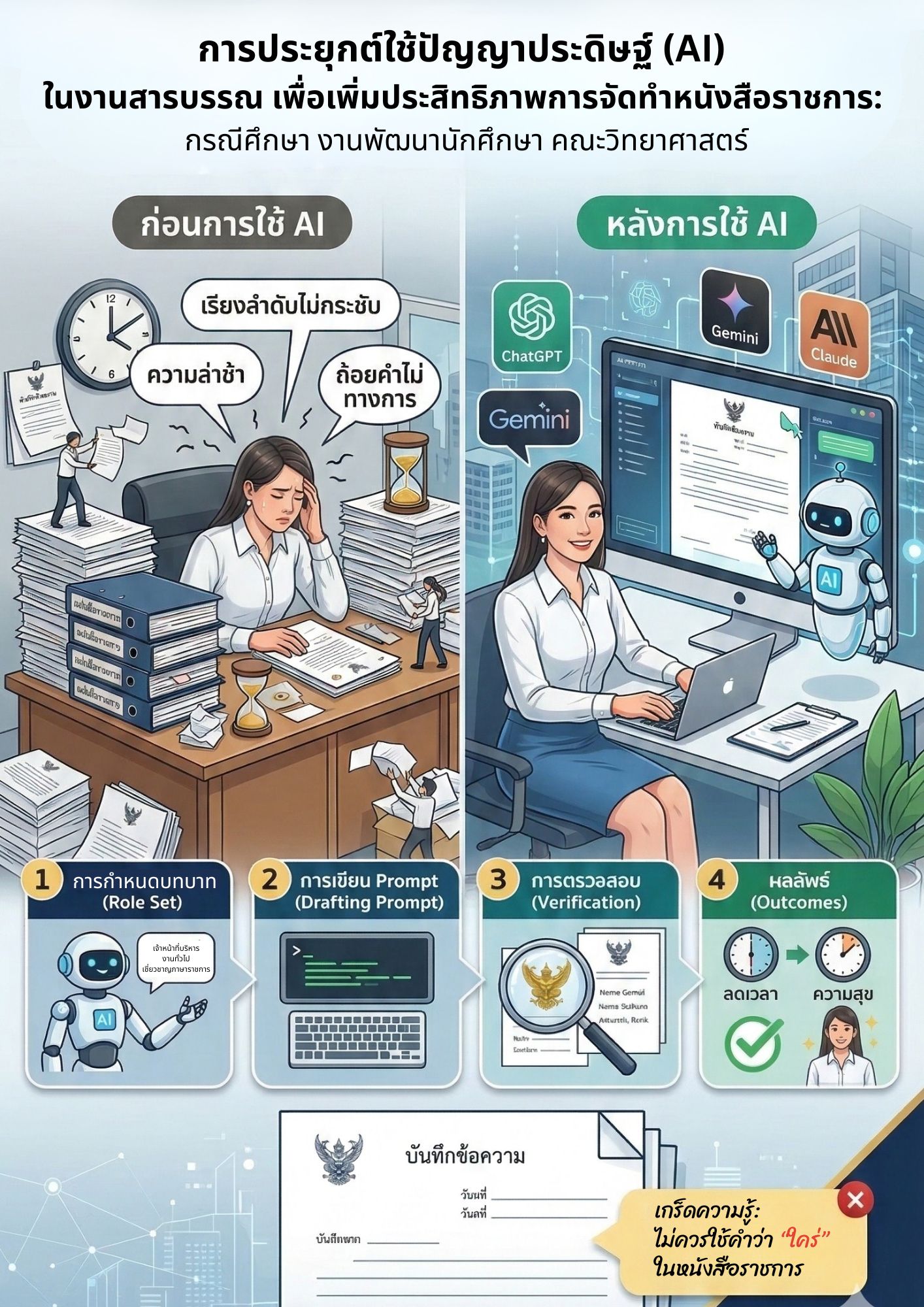 การประยุกต์ใช้ปัญญาประดิษฐ์ (AI) ในงานสารบรรณ เพื่อเพิ่มประสิทธิภาพการจัดทำหนังสือราชการ: กรณีศึกษา งานพัฒนานักศึกษา คณะวิทยาศาสตร์