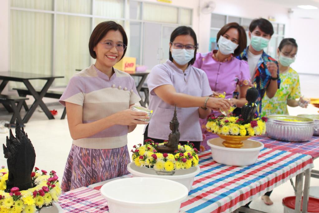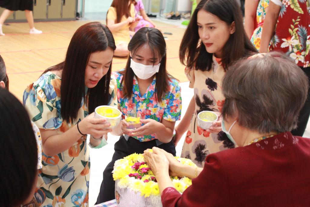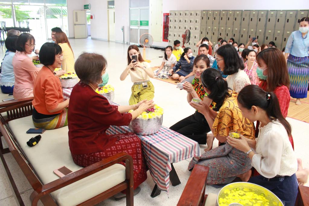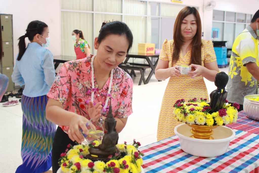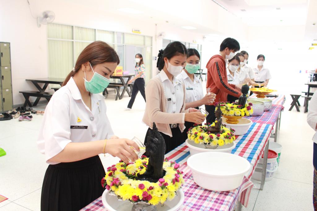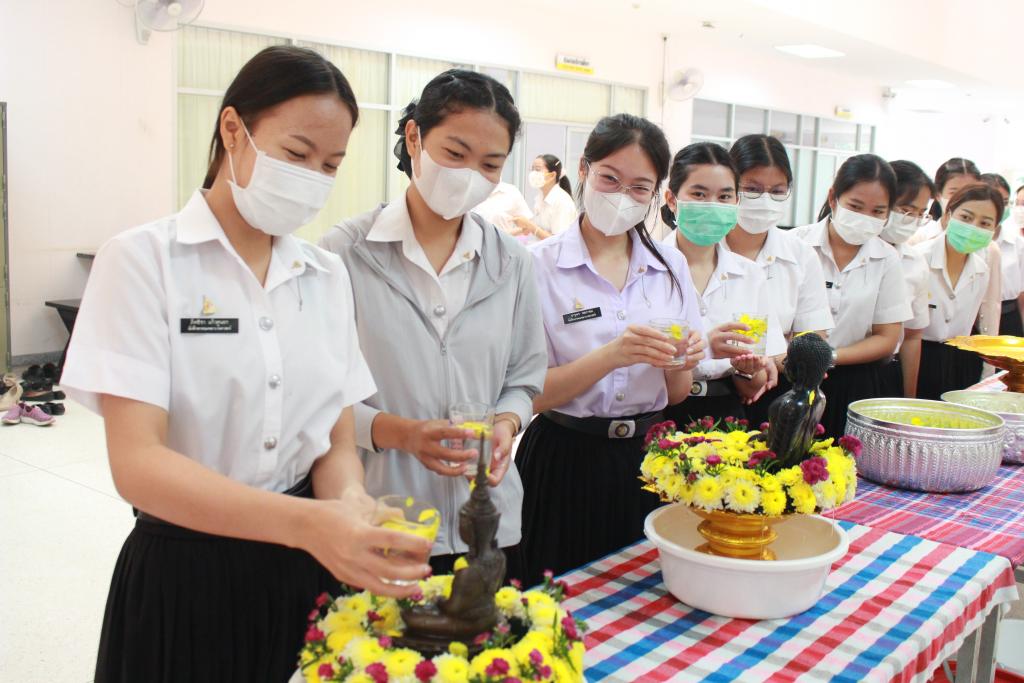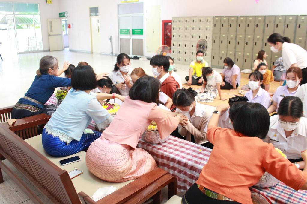 เมื่อวันที่ 11 เมษายน 2566 งานทำนุบำรุงศิลปวัฒนธรรม จัดกิจกรรมสืบสานประเพณีวัฒนธรรมไทย“วันสงกรานต์” ณ บริเวณลานอเนกประสงค์ ชั้น 1 คณะพยาบาลศาสตร์ มีวัตถุประสงค์ เพื่ออนุรักษ์ขนบธรรมเนียมประเพณีวันสงกรานต์ให้คงอยู่สืบไป และ สนับสนุนให้อาจารย์ บุคลากรและนักศึกษาได้มีโอกาสแสดงความเคารพต่อผู้อาวุโส เป็นการเสริมสร้างพื้นฐานจิตใจอันดีงามและความเป็นสิริมงคลแก่ตนเอง โดยมีผู้บริหาร อาจารย์ บุคลากร และนักศึกษา ร่วมสรงน้ำพระพุทธรูป และ รดน้ำดำหัวขอพรผู้บริหารและผู้อาวุโส ของคณะพยาบาลศาสตร์ มีผู้เข้าร่วมกิจกรรม จำนวน 69 คน ร่วมกันแต่งกายด้วยผ้าไทย และเสื้อลายดอกสงกรานต์