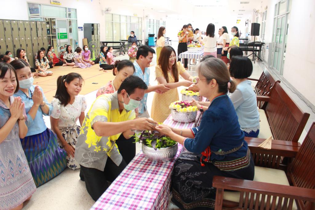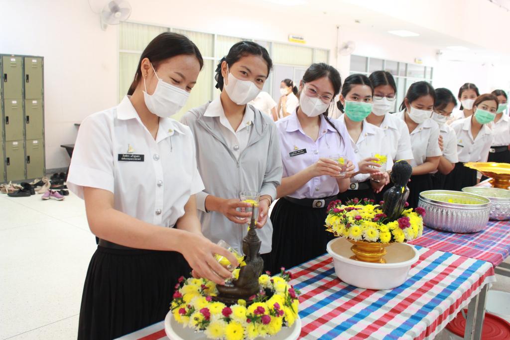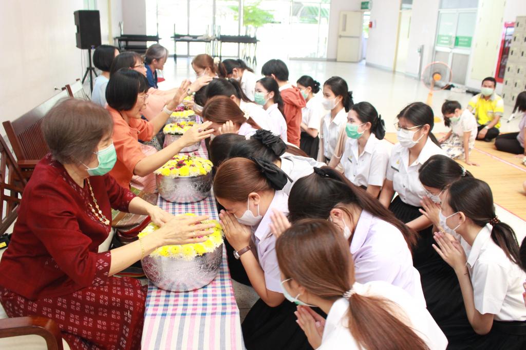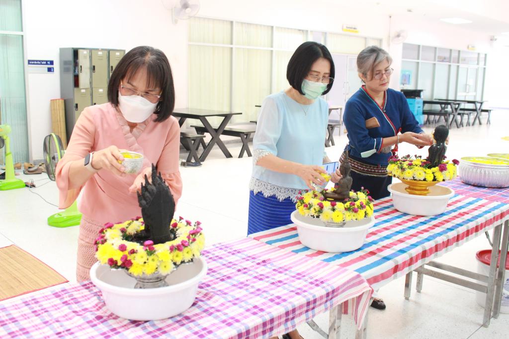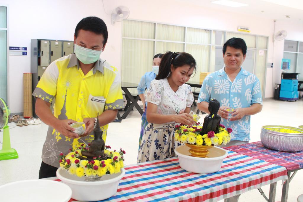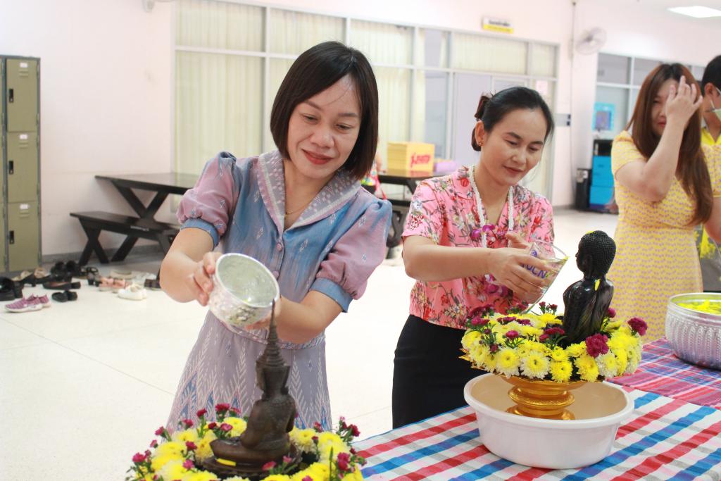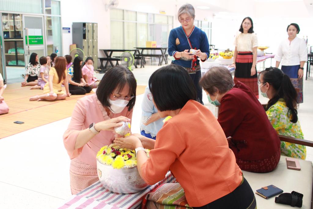 เมื่อวันที่ 11 เมษายน 2566 งานทำนุบำรุงศิลปวัฒนธรรม จัดกิจกรรมสืบสานประเพณีวัฒนธรรมไทย“วันสงกรานต์” ณ บริเวณลานอเนกประสงค์ ชั้น 1 คณะพยาบาลศาสตร์ มีวัตถุประสงค์ เพื่ออนุรักษ์ขนบธรรมเนียมประเพณีวันสงกรานต์ให้คงอยู่สืบไป และ สนับสนุนให้อาจารย์ บุคลากรและนักศึกษาได้มีโอกาสแสดงความเคารพต่อผู้อาวุโส เป็นการเสริมสร้างพื้นฐานจิตใจอันดีงามและความเป็นสิริมงคลแก่ตนเอง โดยมีผู้บริหาร อาจารย์ บุคลากร และนักศึกษา ร่วมสรงน้ำพระพุทธรูป และ รดน้ำดำหัวขอพรผู้บริหารและผู้อาวุโส ของคณะพยาบาลศาสตร์ มีผู้เข้าร่วมกิจกรรม จำนวน 69 คน ร่วมกันแต่งกายด้วยผ้าไทย และเสื้อลายดอกสงกรานต์