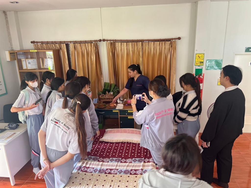 คณะพยาบาลศาสตร์ มหาวิทยาลัยอุบลราชธานี จัดกิจกรรมสืบสานภูมิปัญญาท้องถิ่น เพื่อการดูแลสุขภาพ ภายใต้ โครงการทำนุบำรุงศิลปวัฒนธรรม ประจำปีงบประมาณ 2567 บูรณาการกับรายวิชาในหลักสูตรวิชาปฏิบัติการพยาบาลมารดา ทารกและผดุงครรภ์ 1 ประจำภาคการศึกษา 1/2567 สำหรับนักศึกษาพยาบาลศาสตร์ ชั้นปีที่ 4 ซึ่งกำหนดจัดขึ้น 3 ครั้ง ดังนี้ ครั้งที่ 1 วันที่ 11 มิถุนายน 2567 ครั้งที่ 2 วันที่ 15 กรกฎาคม 2567 และ ครั้งที่ 3 วันที่ 20 สิงหาคม 2567 โดยได้นำนักศึกษาเข้าชมและฝึกปฏิบัติการใช้ภูมิปัญญาท้องถิ่นในการดูแลสุขภาพมารดาหลังคลอด ในโรงพยาบาลส่งเสริมสุขภาพตำบลบ้านศรีไค และ วารินเวชรักษ์ คลินิกแพทย์แผนไทย ซึ่งเป็นสถานปฏิบัติการพยาบาลที่ใช้ภูมิปัญญาท้องถิ่นในการดูแลสุขภาพมารดาหลังคลอด เพื่อให้นักศึกษาพยาบาลศาสตร์ได้เรียนรู้และสามารถประยุกต์ใช้ภูมิปัญญาท้องถิ่นในการดูแลและให้คำแนะนำมารดาหลังคลอดได้อย่างมีประสิทธิภาพ