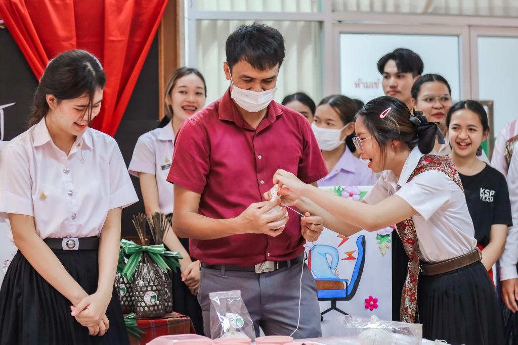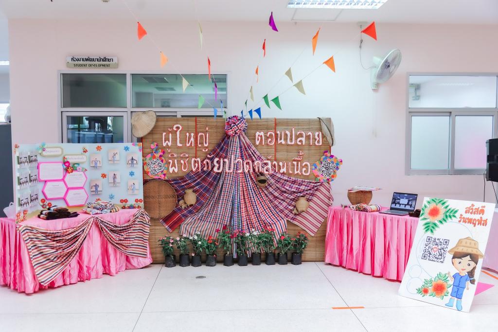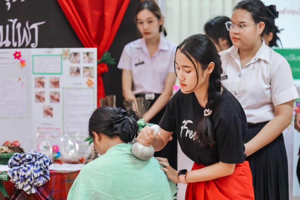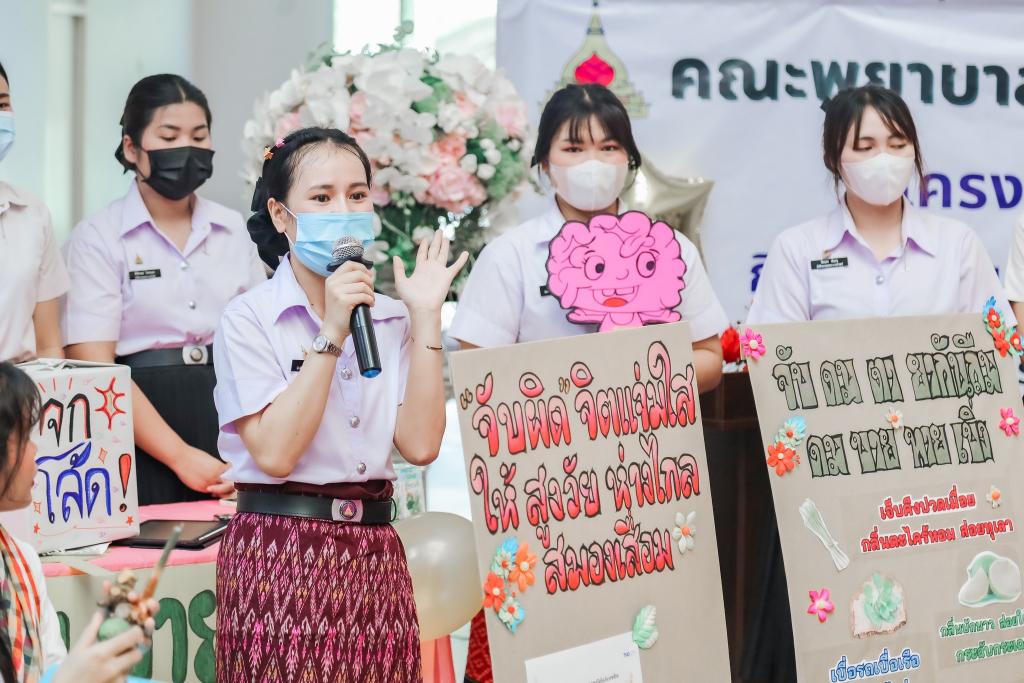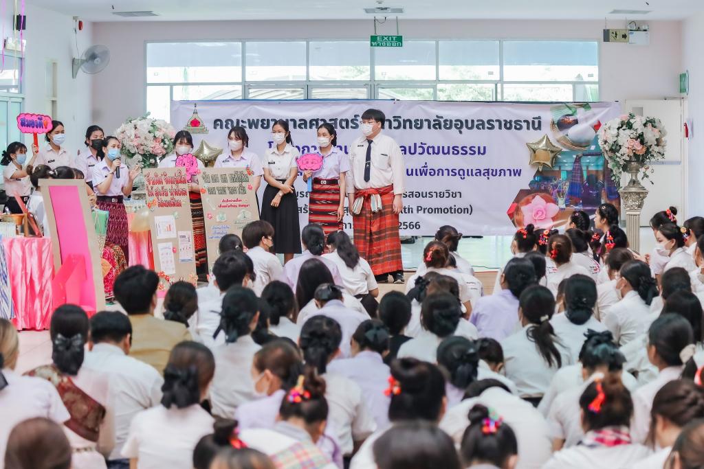 งานทำนุบำรุงศิลปวัฒนธรรม คณะพยาบาลศาสตร์ นำโดยคณบดีคณะพยาบาลศาสตร์ ผศ.ดร.สงวน ธานี และรองคณบดีฝ่ายวิจัยและทำนุบำรุงศิลปวัฒนธรรม อ.สุนันทา ครองยุทธ จัดโครงการทำนุบำรุงศิลปวัฒนธรรมโดยการ บูรณาการกับการจัดการเรียนการสอนในรายวิชาการสร้างเสริมสุขภาพ ปีการศึกษา 1/2566 ในหัวข้อ “สืบสานภูมิปัญญาท้องถิ่น เพื่อการดูแลสุขภาพตามช่วงวัย” มีวัตถุประสงค์เพื่อให้นักศึกษามีความรู้ในการสร้างเสริมสุขภาพโดยประยุกต์ใช้ภูมิปัญญาท้องถิ่น ได้เรียนรู้เกี่ยวกับภูมิปัญญาท้องถิ่นเพื่อสร้างเสริมสุขภาพและสามารถประยุกต์ใช้ภูมิปัญญาท้องถิ่นเพื่อการดูแลสุขภาพ โดยมีนักศึกษาพยาบาลชั้นปีที่ 2 และอาจารย์สาขาการพยาบาลครอบครัวและชุมชน ร่วมจัดกิจกรรมจำนวน 110 คน โดยกิจกรรมนี้ยังมีการบูรณาการกับการวิจัยในชั้นเรียนหัวข้อ “ผลของการจัดการเรียนรู้แบบโครงงานเป็นฐานต่อสมรรถนะในการประยุกต์ใช้ภูมิปัญญาเพื่อการสร้างเสริมสุขภาพของนักศึกษาพยาบาล” รับผิดชอบกิจกรรม โดย ผศ.สิริทรัพย์ สีหะวงษ์ และ อาจารย์อังศวีร์ จันทะโคตร อาจารย์ประจำคณะพยาบาลศาสตร์