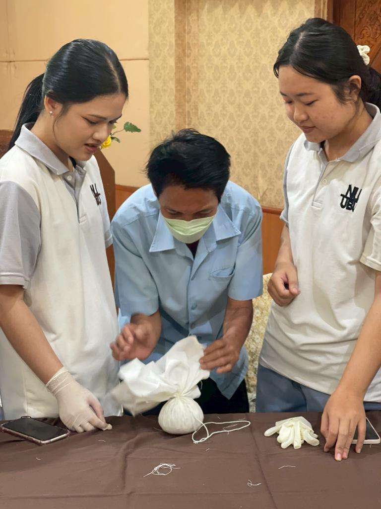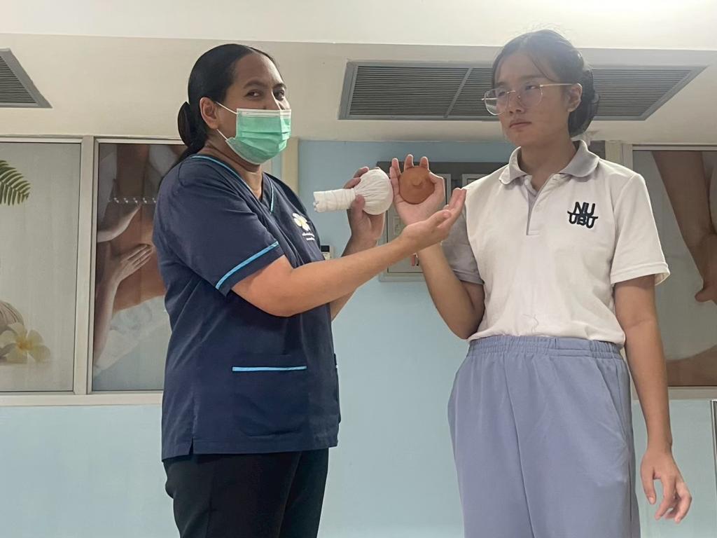 คณะพยาบาลศาสตร์ มหาวิทยาลัยอุบลราชธานี จัดกิจกรรมสืบสานประเพณีภูมิปัญญาท้องถิ่น เพื่อการดูแลสุขภาพ ภายใต้ โครงการทำนุบำรุงศิลปวัฒนธรรม ประจำปีงบประมาณ 2568 บูรณาการกับรายวิชาในหลักสูตร โดยสาขาวิชาการพยาบาลมารดา ทารก และผดุงครรภ์ ได้เล็งเห็นความสำคัญของการประยุกต์ใช้ภูมิปัญญาท้องถิ่นในการดูแลสุขภาพมารดา หลังคลอด จึงบูรณาการการใช้ภูมิปัญญาท้องถิ่นเข้ากับการจัดการเรียนการสอนในรายวิชาปฏิบัติการพยาบาลมารดา ทารกและผดุงครรภ์ 1 ประจำภาคการศึกษา 1/2568 สำหรับนักศึกษาพยาบาลศาสตร์ ชั้นปีที่ 4 เพื่อให้นักศึกษาพยาบาลศาสตร์ มีความรู้ความเข้าใจ และสามารถประยุกต์ใช้ภูมิปัญญาท้องถิ่นในการดูแลมารดาหลังคลอดได้อย่างมีประสิทธิภาพ ซึ่งกำหนดจัดกิจกรรม 3 ครั้ง ดังนี้ ครั้งที่ 1 วันที่ 20 พฤษภาคม 2568 ครั้งที่ 2 วันที่ 1 กรกฎาคม 2568 และ ครั้งที่ 3 วันที่ 14 สิงหาคม 2568 โดยนักศึกษาได้รับฟังการบรรยายการใช้ภูมิปัญญาท้องถิ่น และฝึกทำลูกประคบสมุนไพร ณ โรงพยาบาลส่งเสริมสุขภาพตำบลเมืองศรีไค และ ศูนย์อนามัยที่ 10 เพื่อนำไปประยุกต์ใช้ในการดูแลสุขภาพมารดาหลังคลอดที่แหล่งฝึกปฏิบัติงานได้อย่างปลอดภัยต่อไป
