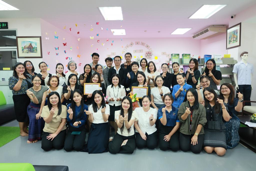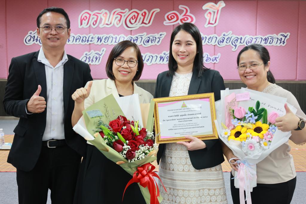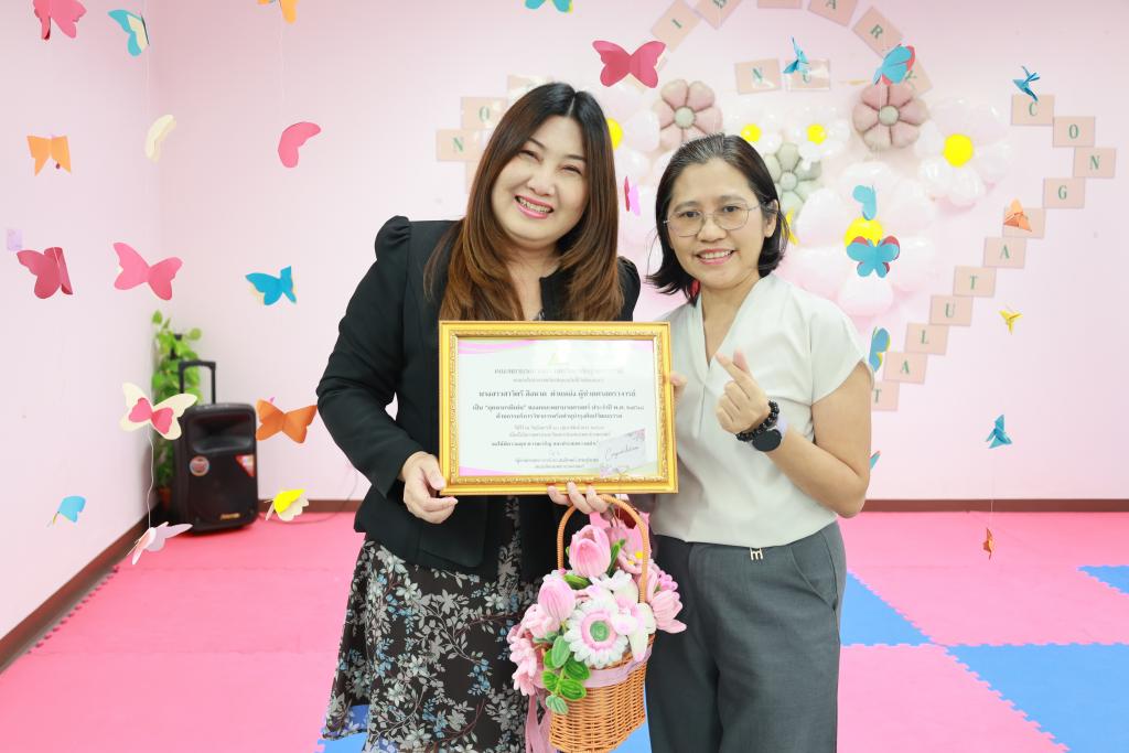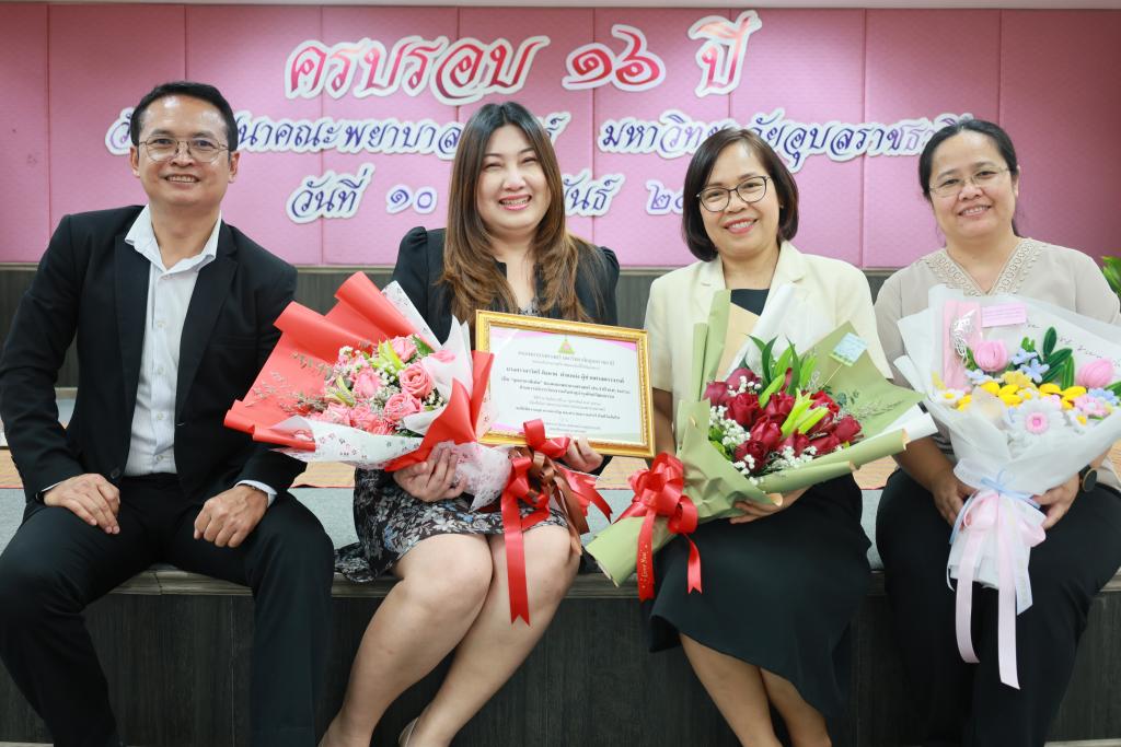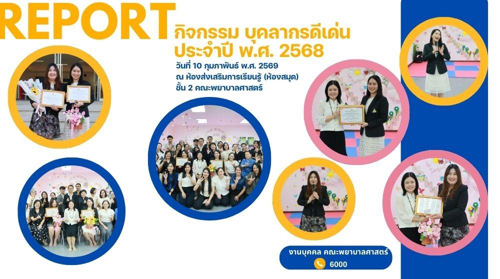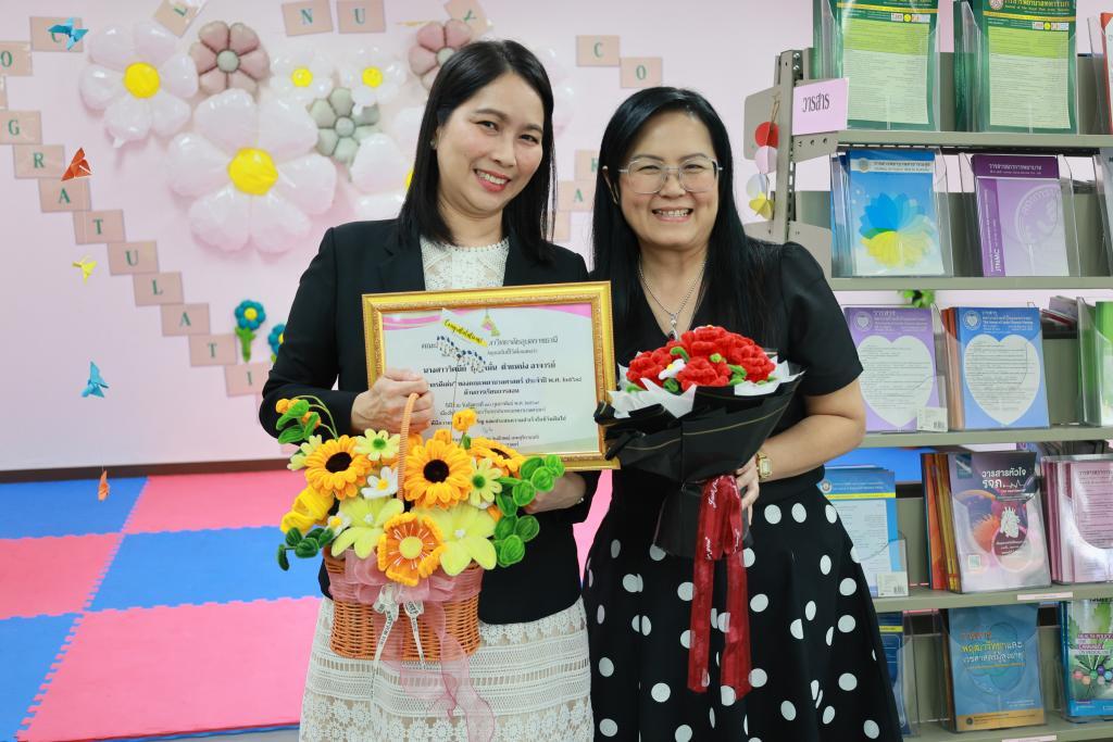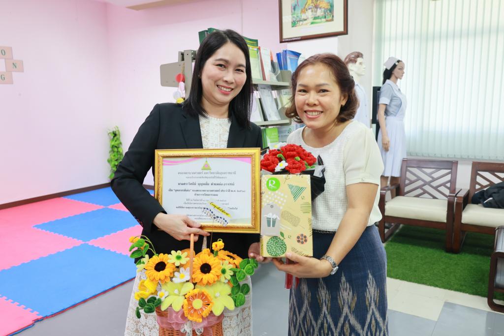 (ผู้ช่วยศาสตราจารย์ ดร.สมลักษณ์ เทพสุริยานนท์) เป็นประธานในพิธีมอบใบประกาศเกียรติคุณแด่บุคลากรดีเด่น ประจำปี พ.ศ. 2568 และมอบดอกไม้แสดงความชื่นชมยินดี เพื่อยกย่อง เชิดชูเกียรติ เป็นขวัญและกำลังใจในการปฏิบัติงานแก่บุคลากร โดยมีผู้บริหาร คณาจารย์และบุคลากร ร่วมในพิธีมอบใบประกาศฯ ณ ห้องส่งเสริมการเรียนรู้ (ห้องสมุด) คณะพยาบาลศาสตร์ ชั้น 2 นอกจากพิธีมอบใบประกาศเกียรติคุณแล้ว ผู้เข้าร่วมกิจกรรมยังได้ร่วมลุ้นรับรางวัลจากกิจกรรมดังกล่าว โดยจัดขึ้นพร้อมกิจกรรมวันสถาปนาคณะพยาบาลศาสตร์ ครบ 16 ปี ทั้งนี้ ผู้ได้รับคัดเลือกเป็นบุคลากรดีเด่น คณะพยาบาลศาสตร์ ประจำปี พ.ศ. 2568 ดังนี้