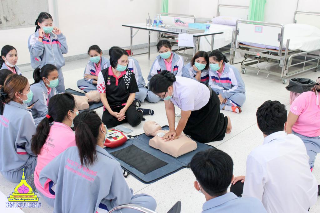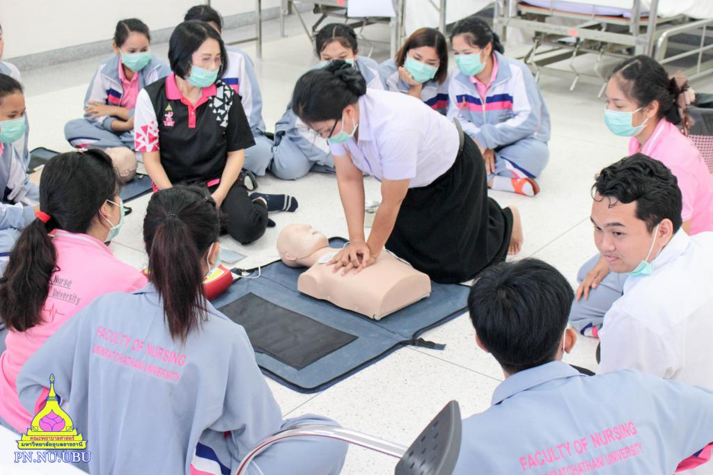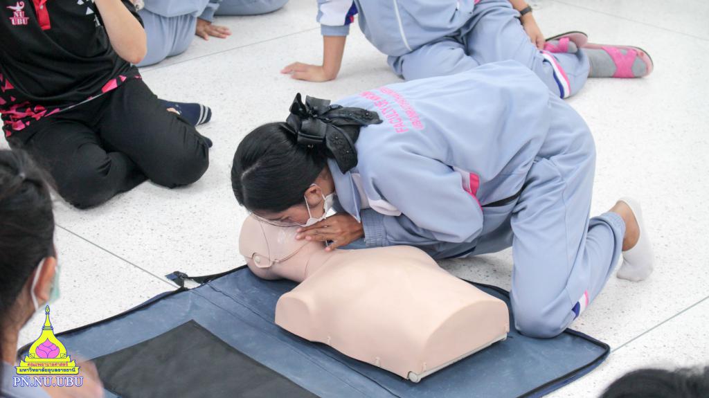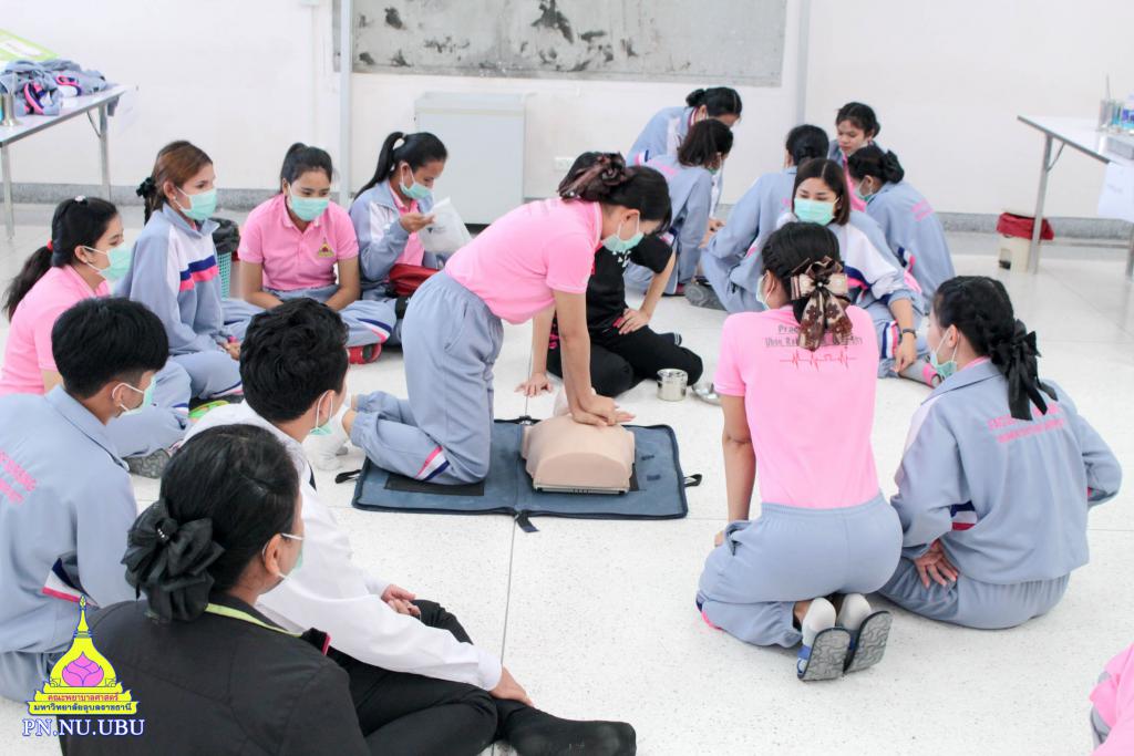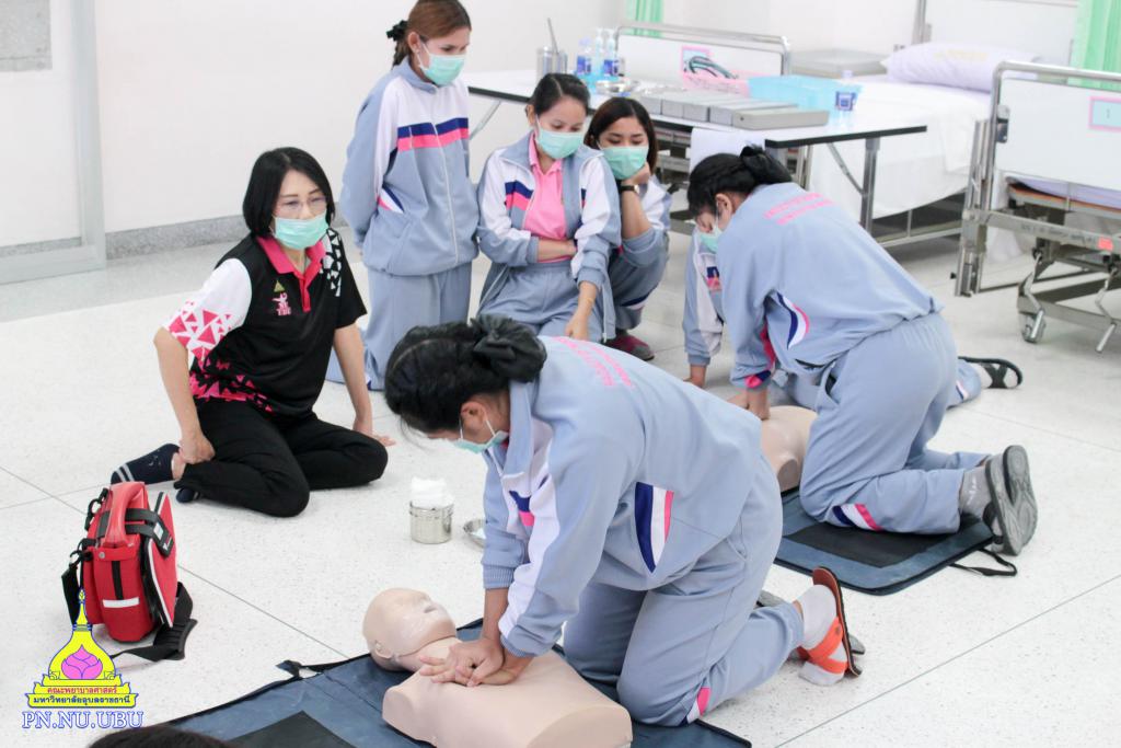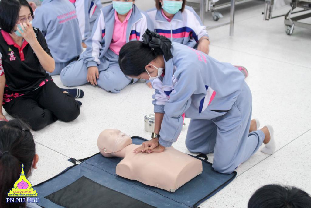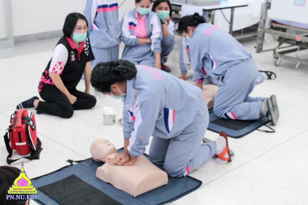 ผู้เข้าอบรมหลักสูตรประกาศนียบัตรผู้ช่วยพยาบาล (PN) รุ่นที่ 5 ฝึกการปฐมพยาบาลเบื้องต้น/การช่วยเหลือในภาวะฉุกเฉินและอุบัติเหตุ ในรายวิชา เทคนิกการช่วยเหลือดูแลผู้ใช้บริการขั้นพื้นฐาน