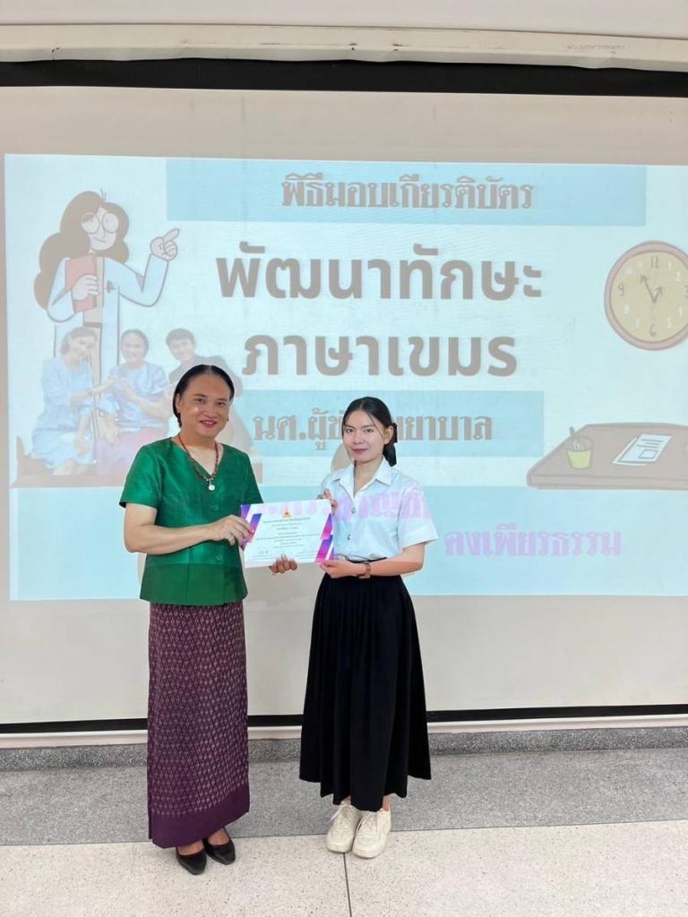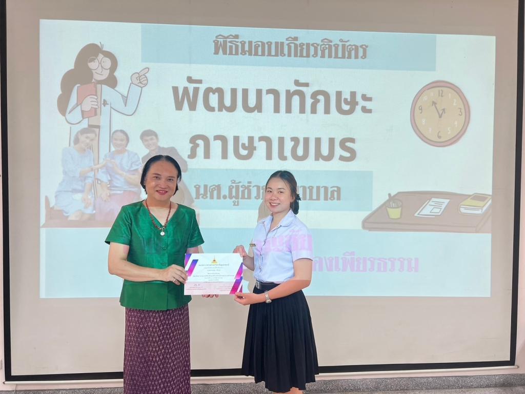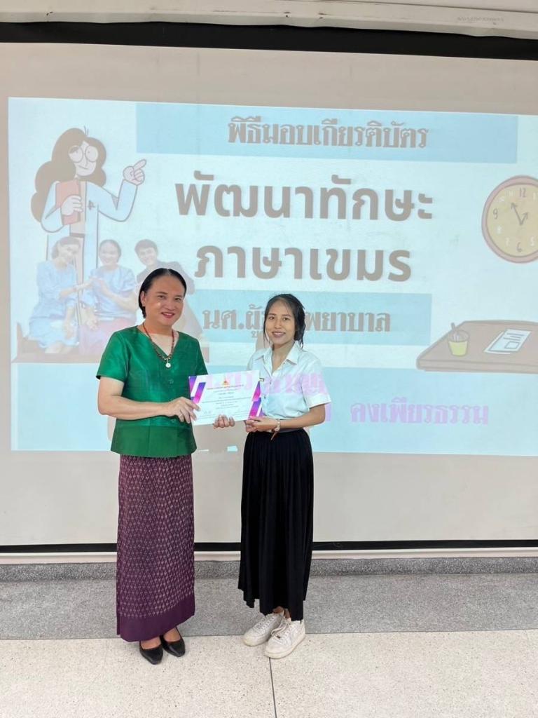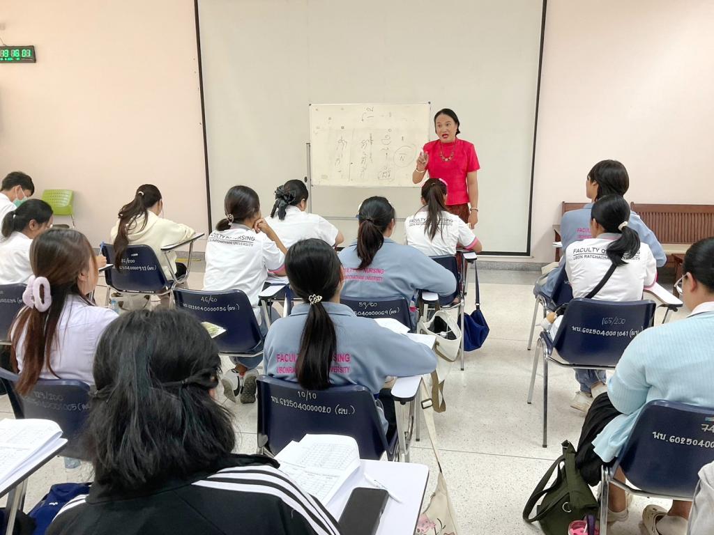 คณะพยาบาลศาสตร์ ม.อุบลฯ จัดกิจกรรม “พัฒนาทักษะภาษาเขมรแก่นักศึกษาที่ประสงค์ทำงานในโรงพยาบาลเอกชนและต่างประเทศ” วันที่ 18 – 22 มีนาคม พ.ศ. 2567 และ วันที่ 22 – 26 เมษายน พ.ศ. 2567 ณ คณะพยาบาลศาสตร์ ภายใต้โครงการทุนนวัตกรรมสายอาชีพชั้นสูง ปี 2566 ให้แก่นักศึกษาหลักสูตรประกาศนียบัตรผู้ช่วยพยาบาล มีวัตถุประสงค์เพื่อพัฒนาทักษะการใช้ภาษากัมพูชาในการสื่อสารได้เหมาะสมในการสนทนากับผู้รับบริการ และเพื่อส่งเสริมเจตคติที่ดีต่อภาษากัมพูชาให้กับนักศึกษา โดยวิทยากรผู้ทรงคุณวุฒิ รองศาสตราจารย์ ดร.ชาญชัย คงเพียรธรรม อาจารย์ประจำสาขาวิชาภาษาและวัฒนธรรมอาเซียน คณะศิลปศาสตร์ มหาวิทยาลัยอุบลราชธานี ผู้รับผิดชอบกิจกรรม อ.อานนท์ สังขะพงษ์ และ อ.ณิศรา สืบสำราญ