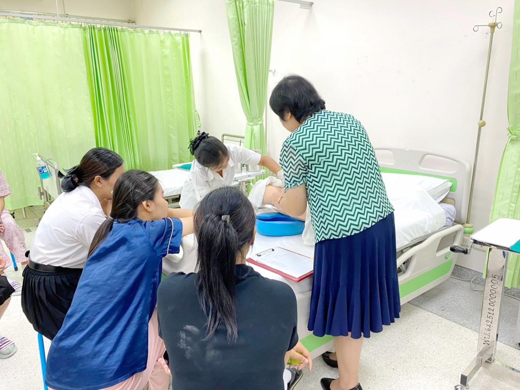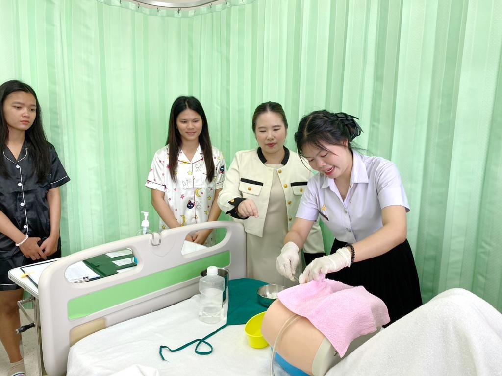 ส่วนการฝึกปฏิบัติใน “F/C Care” หรือการดูแลเรื่องของสายสวนปัสสาวะ (Foley Catheter) เป็นทักษะที่จำเป็นในการช่วยเหลือผู้ป่วยที่มีความจำเป็นต้องใช้สายสวน นักศึกษาได้ฝึกทักษะในการดูแลรักษาความสะอาด และการจัดการกับภาวะแทรกซ้อนที่อาจเกิดขึ้น