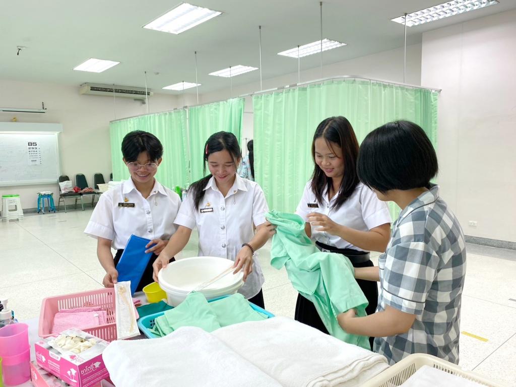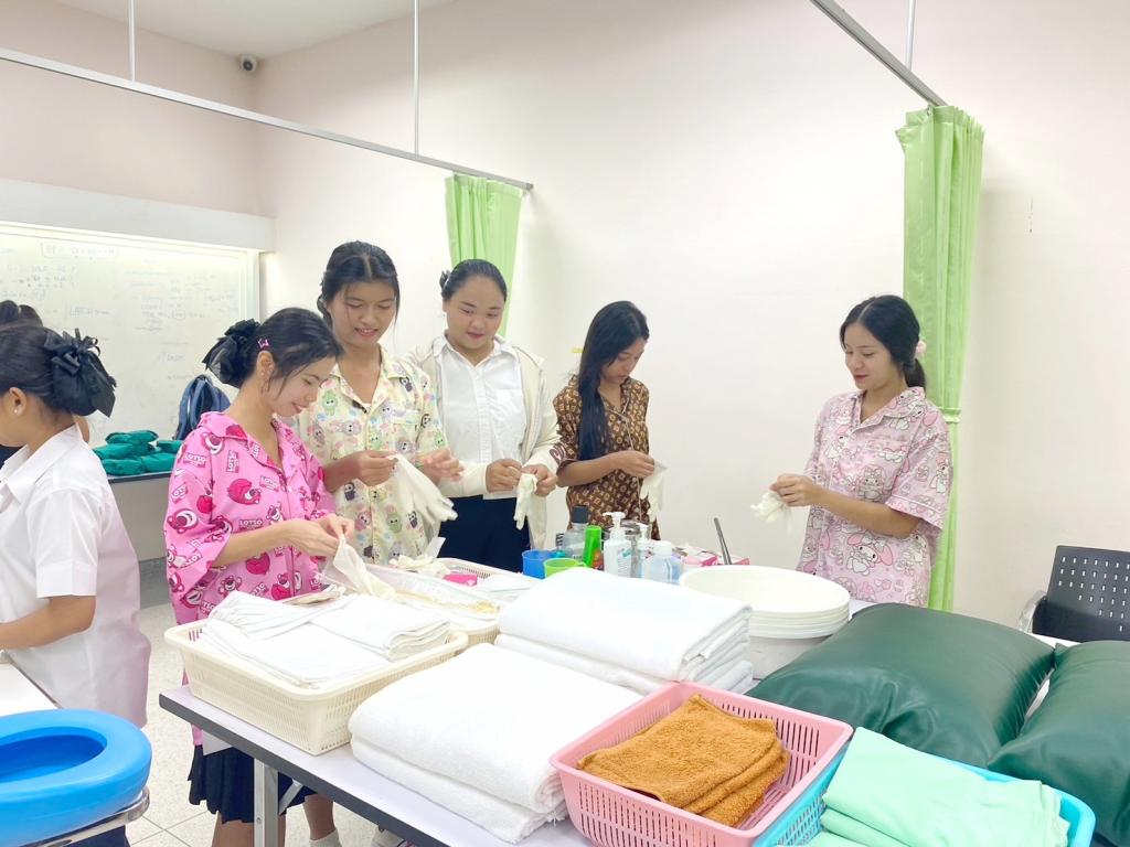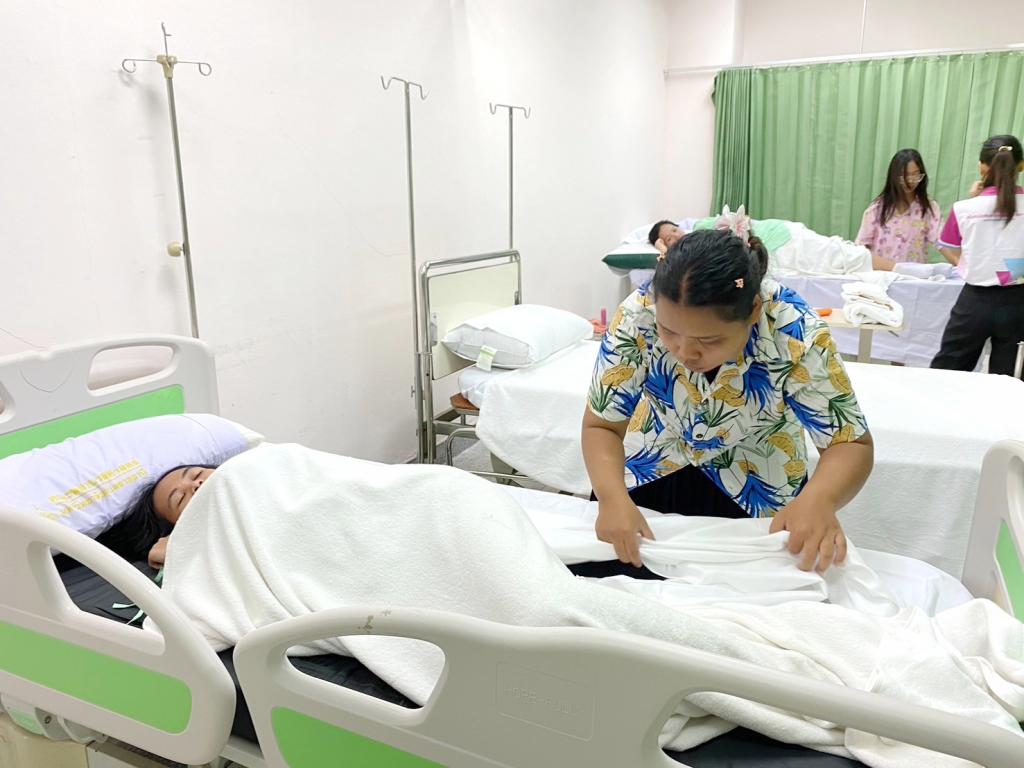 การฝึกปฏิบัติการ “Bed Bath” หรือการอาบน้ำบนเตียง เป็นทักษะสำคัญสำหรับผู้ช่วยพยาบาลในการดูแลความสะอาดของผู้ป่วยที่ไม่สามารถเคลื่อนไหวได้ การฝึกปฏิบัติในครั้งนี้มุ่งเน้นให้นักศึกษาได้เรียนรู้ขั้นตอนอย่างละเอียด ตั้งแต่การเตรียมอุปกรณ์ การป้องกันการติดเชื้อ และการดูแลความปลอดภัยและสบายตัวของผู้ป่วย