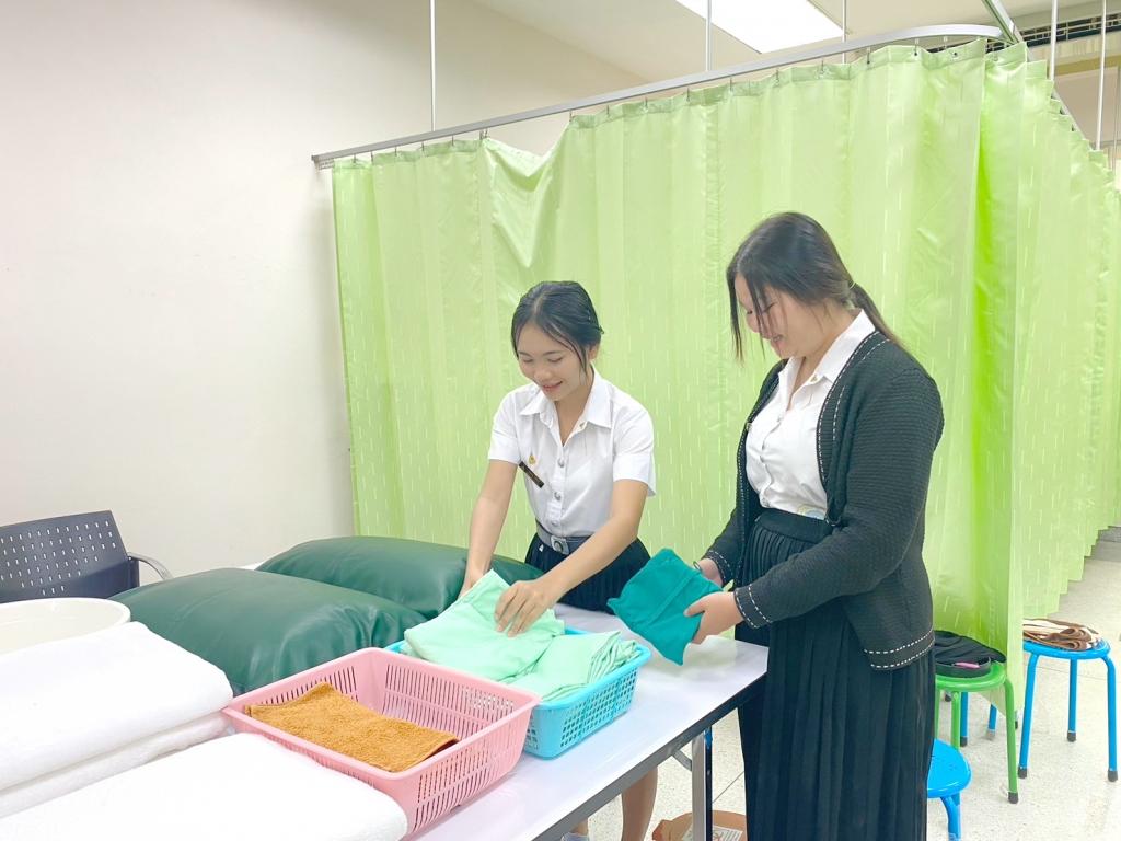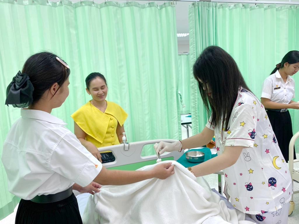 นักศึกษาหลักสูตรประกาศนียบัตรผู้ช่วยพยาบาล (PN) หลักสูตร 1 ปี ฝึกปฏิบัติการในวิชาเทคนิคการช่วยเหลือดูแลบุคคลขั้นพื้นฐาน โดยมีหัวข้อสำคัญคือ “LAB Bed Bath” และ “LAB F/C Care” ซึ่งเป็นทักษะที่จำเป็นสำหรับการดูแลผู้ป่วยในสถานพยาบาล