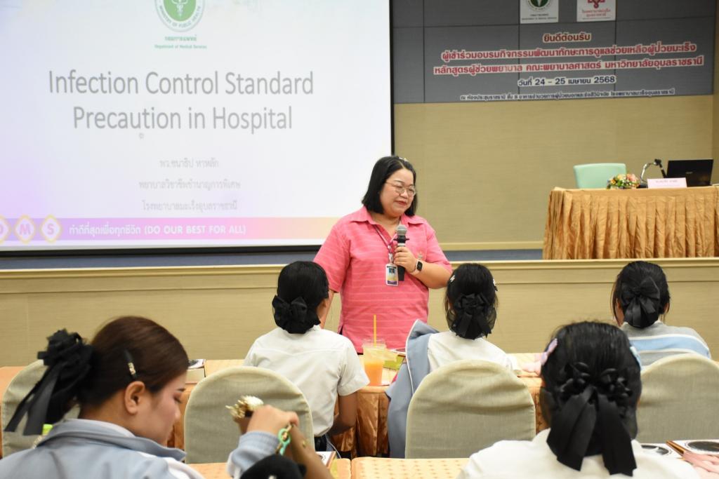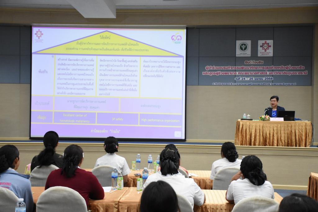 นักศึกษาหลักสูตรประกาศนียบัตรผู้ช่วยพยาบาล ทุนนวัตกรรมสายอาชีพชั้นสูง (กสศ.) ปีการศึกษา 2567 คณะพยาบาลศาสตร์ มหาวิทยาลัยอุบลราชธานี ได้เข้าร่วมกิจกรรมศึกษาดูงานและอบรมเชิงปฏิบัติการ เพื่อเสริมสร้างความรู้ ทักษะ และประสบการณ์ที่จำเป็นในการดูแลผู้ป่วยมะเร็งอย่างมีคุณภาพ