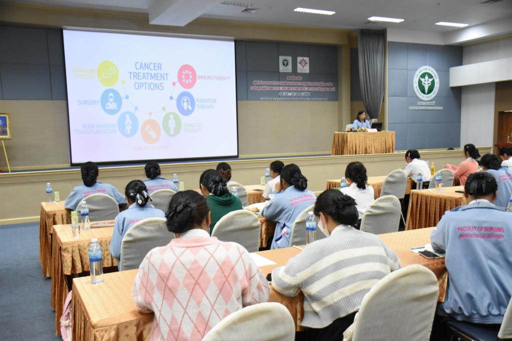 นักศึกษาได้รับฟังบรรยายจากผู้เชี่ยวชาญด้านการพยาบาลมะเร็ง อาทิ