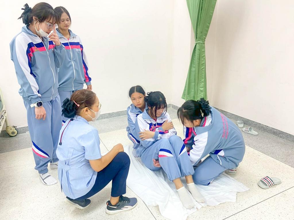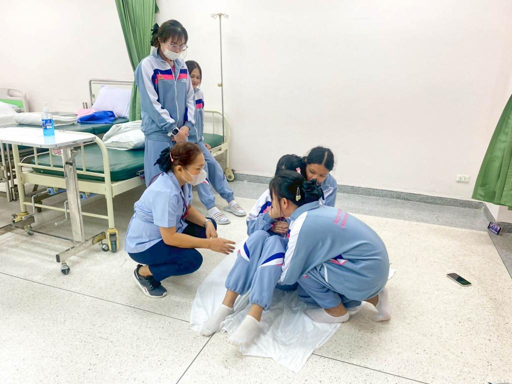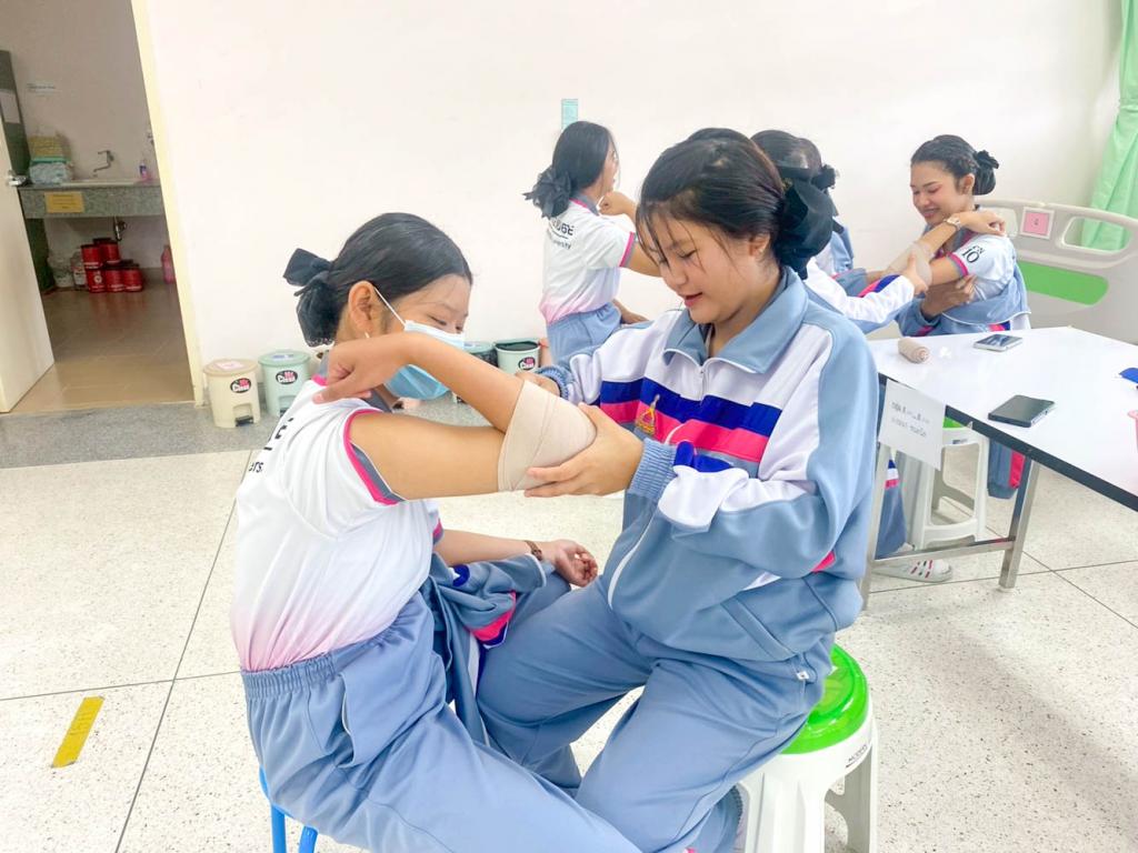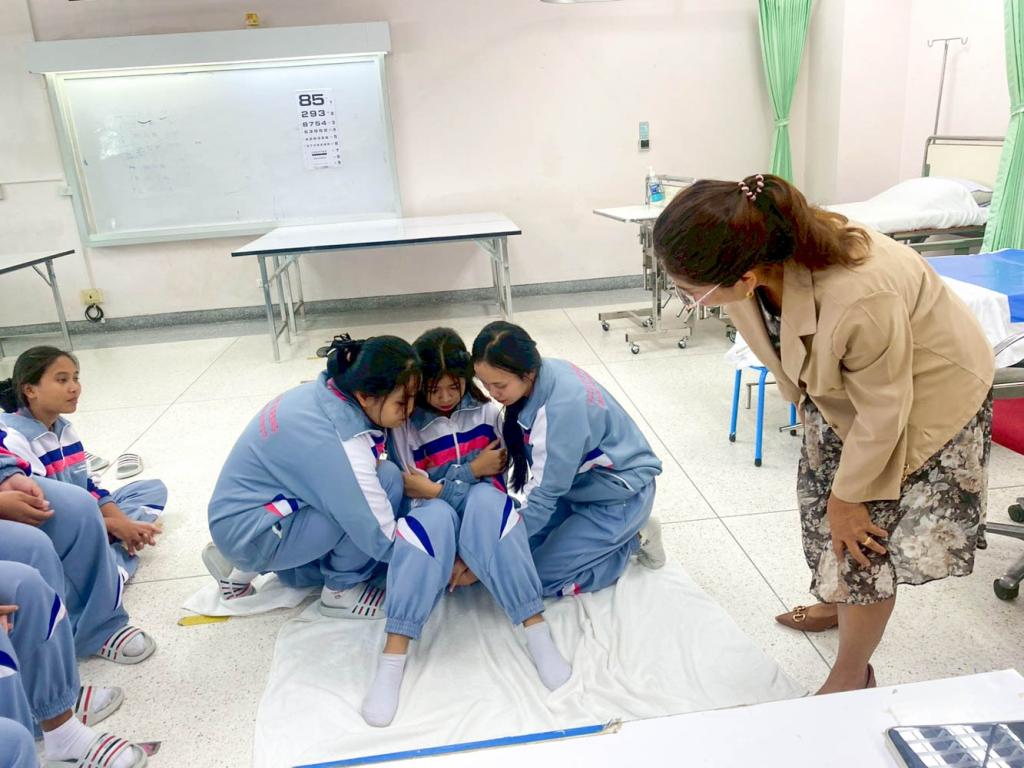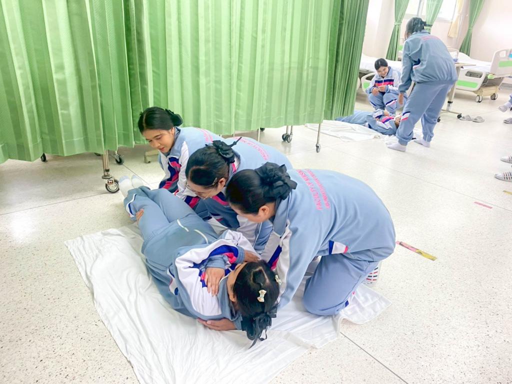 กิจกรรมฝึกปฏิบัติในครั้งนี้ นักศึกษาได้เรียนรู้ขั้นตอนการประเมินอาการผู้ป่วย การห้ามเลือด การพันผ้าพยาบาล การช่วยฟื้นคืนชีพ (CPR) รวมถึงเทคนิคการดูแลผู้บาดเจ็บเบื้องต้นอย่างปลอดภัย โดยมีอาจารย์ผู้สอนให้คำแนะนำอย่างใกล้ชิด เพื่อเสริมสร้างทั้งความรู้และความมั่นใจในการปฏิบัติจริง