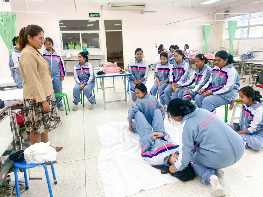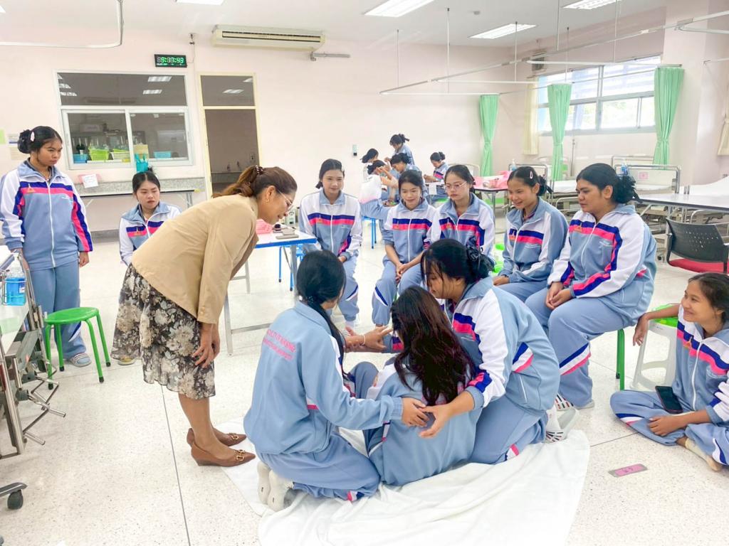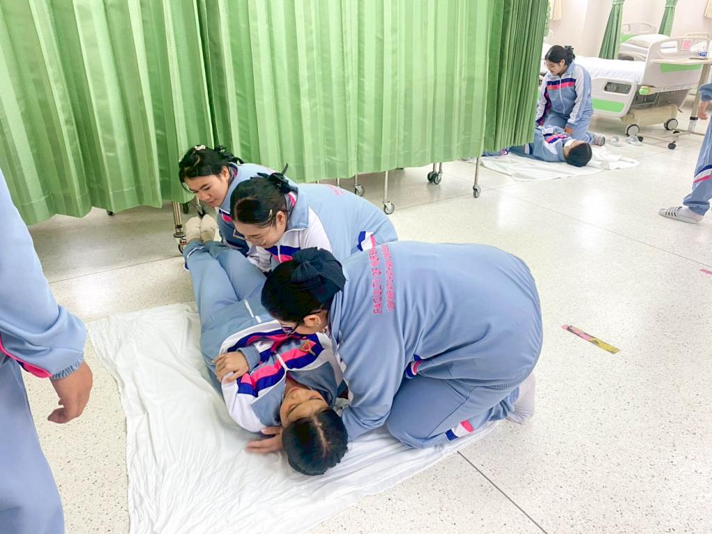 คณะพยาบาลศาสตร์ มหาวิทยาลัยอุบลราชธานี จัดการเรียนการสอนรายวิชา เทคนิคการช่วยเหลือดูแลบุคคลขั้นพื้นฐาน (Fundamental Care Techniques for Patients) ให้นักศึกษาหลักสูตรประกาศนียบัตรผู้ช่วยพยาบาล ได้ฝึกปฏิบัติในหัวข้อ “การปฐมพยาบาลเบื้องต้น” เพื่อเตรียมความพร้อมในการดูแลและช่วยเหลือบุคคลในภาวะฉุกเฉินอย่างถูกวิธี