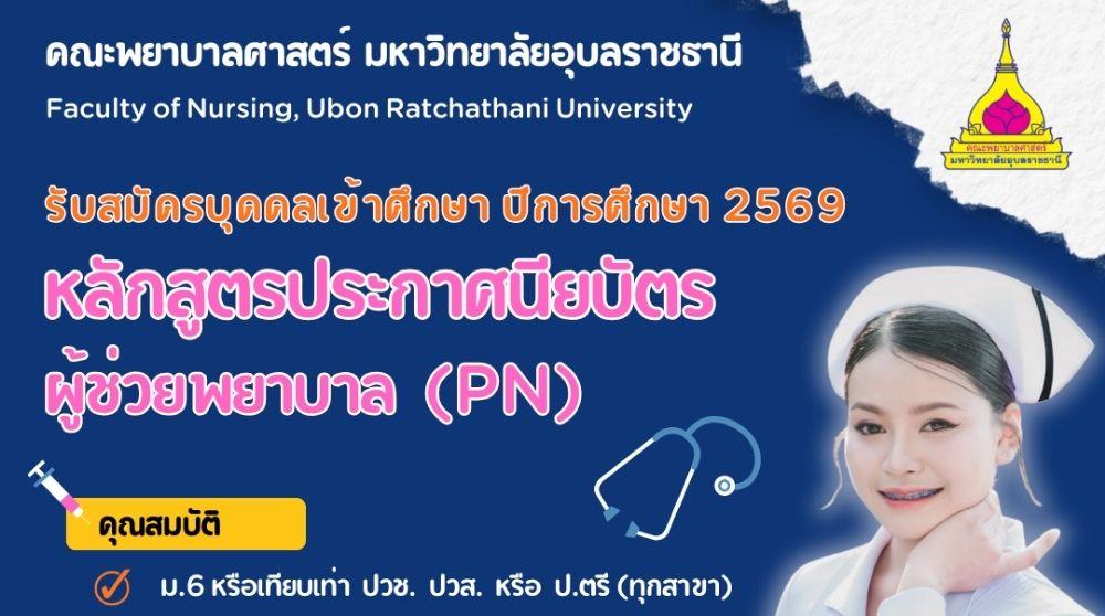 คลิ๊ก >> ประกาศรับสมัครบุคคลเข้าศึกษาในมหาวิทยาลัยอุบลราชธานีหลักสูตรประกาศนียบัตรผู้ช่วยพยาบาล คณะพยาบาลศาสตร์ ประจำปีการศึกษา 2569