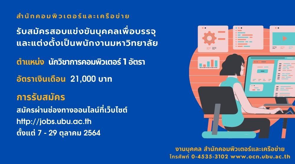 สำนักคอมพิวเตอร์และเครือข่าย รับสมัครสอบแข่งขันบุคคลเพื่อบรรจุและแต่งตั้งเป็นพนักงานมหาวิทยาลัย ตำแหน่ง นักวิชาการคอมพิวเตอร์ปฏิบัติการ จำนวน 1 อัตรา