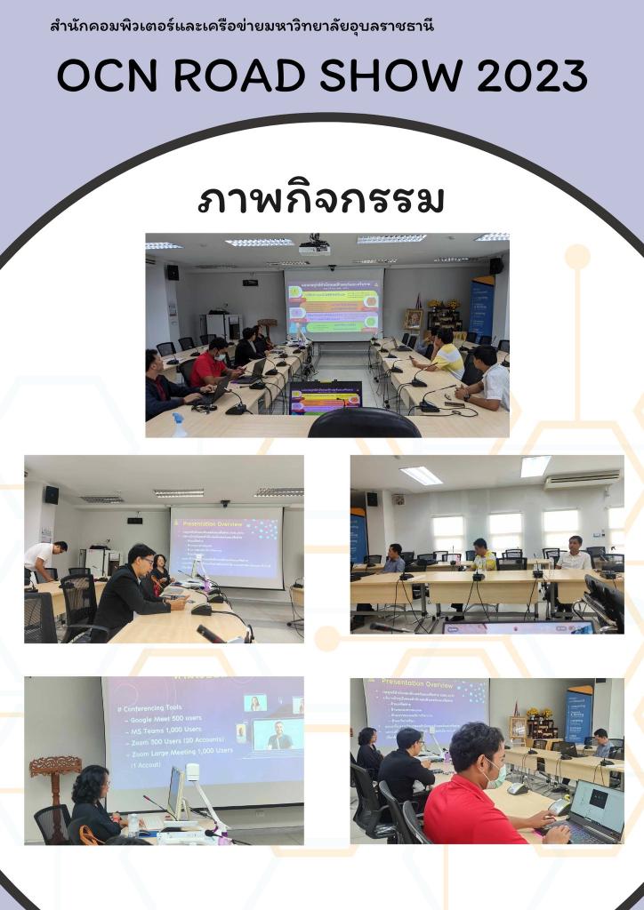 เมื่อวันที่ 7 สิงหาคม 2566 สำนักคอมพิวเตอร์และเครือข่าย นำโดย ผศ.ดร. อธิพงศ์ สุริยา พร้อมทีมผู้บริหารและบุคคลากร ออกแนะนำโครงการเพิ่มศักยภาพการให้บริการและประสานงานเชิงรุก OCN Road Show 2023 ณ คณะบริหารศาสตร์ โดยมีคณะผู้บริหารและบุคลากรให้การต้อนรับและร่วมกิจกรรม มีการแนะนำการให้บริการต่าง ๆ ของสำนักคอมพิวเตอร์และเครือข่าย พร้อมแก้ปัญหาระบบต่าง ๆ ให้บุคลากรเพื่อพร้อมก้าวเข้าสู่มหาวิทยาลัยดิจิทัล