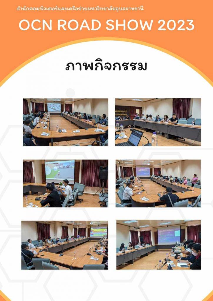 เมื่อวันที่ 27 มิถุนายน 2566 สำนักคอมพิวเตอร์และเครือข่าย นำโดย ผศ.ดร. อธิพงศ์ สุริยา ผู้อำนวยการสำนักคอมพิวเตอร์และเครือข่าย พร้อมทีมผู้บริหารและบุคคลากร ออกแนะนำโครงการเพิ่มศักยภาพการให้บริการและประสานงานเชิงรุก OCN Road Show 2023 ณ คณะศิลปศาสตร์ โดยมีคณะผู้บริหารและบุคลากรให้การต้อนรับและร่วมกิจกรรม มีการแนะนำการให้บริการต่าง ๆ ของสำนักคอมพิวเตอร์และเครือข่าย พร้อมแก้ปัญหาระบบต่าง ๆ ให้บุคลากรเพื่อพร้อมก้าวเข้าสู่มหาวิทยาลัยดิจิทัล