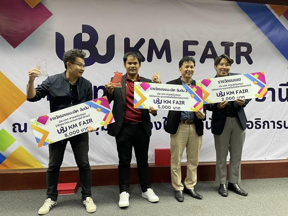 เมื่อวันที่ 11 สิงหาคม 2566 มหาวิทยาลัยอุบลราชธานี จัดกิจกรรม UBU KM FAIR 2023 เปิดเวทีการนำเสนอการแลกเปลี่ยนเรียนรู้ของบุคลากร ทั้งสายวิชาการและสายสนับสนุนขึ้น โดยมี ดร.ฐิติเดช ลือตระกูล รองอธิการบดีฝ่ายแผนและพัฒนาคุณภาพองค์กร เป็นประธานกล่าวเปิดโครงการ ณ ห้องประชุมศรีเมืองใหม่ สำนักงานอธิการบดี โดยมีบุคลากร สายสนับสนุน สำนักคอมพิวเตอร์และเครือข่าย เข้าร่วมนำเสนอผลงาน นางสาววาสนา สะอาด นายสุรศักดิ์  ศรีวิเศษ นายณัฐพล มารุตะพันธ์ นายภาคินัย บุญไพโรจน์ และได้รับรางวัล ดังนี้