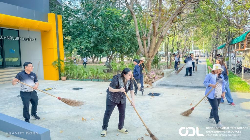 วันที่ 6 กุมภาพันธ์ 2569 คณะผู้บริหารและบุคลากรสำนักเทคโนโลยีดิจิทัลและทรัพยากรการเรียนรู้ (ODL) ร่วมแรงร่วมใจกันดำเนินกิจกรรม 7ส บริเวณพื้นที่โดยรอบอาคารข้อมูลท้องถิ่นและอาคารสารสนเทศ (ODL2–ODL3) เพื่อปรับปรุงสภาพแวดล้อมให้เป็นระเบียบ เรียบร้อย และเอื้อต่อการใช้งาน