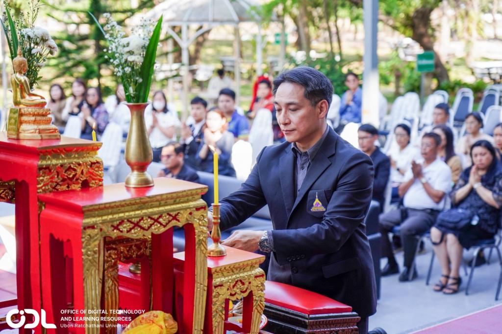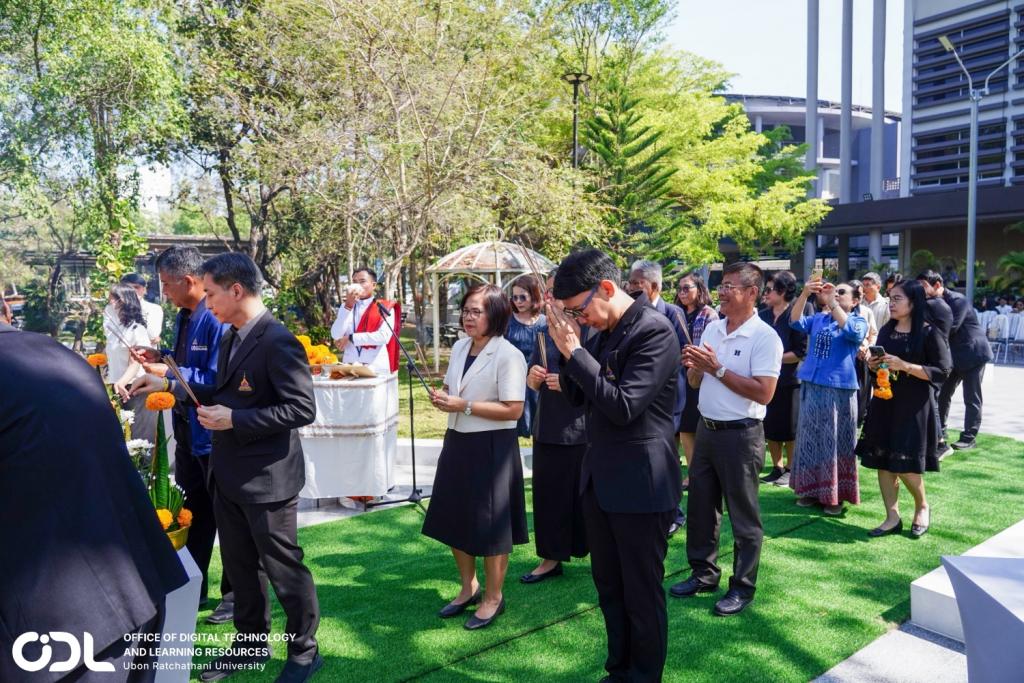 ผู้บริหารและบุคลากรสำนักเทคโนโลยีดิจิทัลและทรัพยากรการเรียนรู้ มหาวิทยาลัยอุบลราชธานี นำโดย ผศ.ดร.อธิพงศ์ สุริยา รักษาการแทนผู้อำนวยการสำนักฯ เข้าร่วมกิจกรรมครบรอบ 1 ปี การจัดตั้งอนุสรณ์สถาน รศ.ดร.สมจิตต์ ยอดเศรณี อธิการบดีผู้ก่อตั้งมหาวิทยาลัยอุบลราชธานี เมื่อวันที่ 10 กุมภาพันธ์ 2569 ณ บริเวณด้านหน้าอาคารสารสนเทศ สมจิตต์ ยอดเศรณี (ODL3)