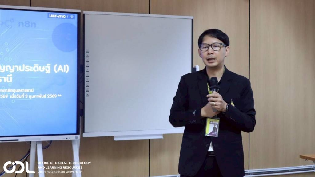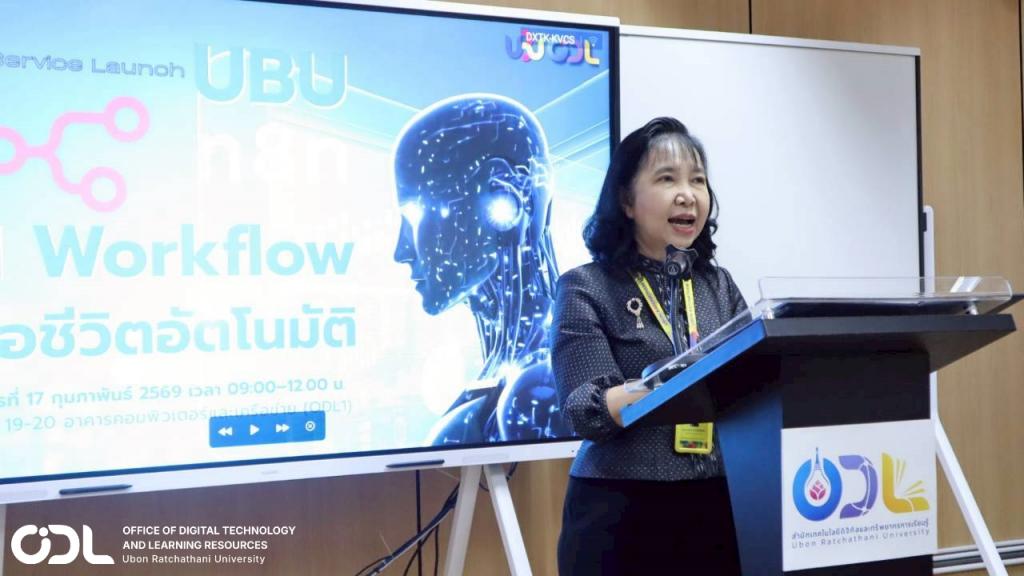 สำนักเทคโนโลยีดิจิทัลและทรัพยากรการเรียนรู้ เปิดตัวโครงการ “UBU AI SERVICE Workshop: UBU n8n AI Workflow เพื่อชีวิตอัตโนมัติ” อย่างเป็นทางการ เมื่อวันที่ 17 กุมภาพันธ์ 2569 ณ ห้องประชุมชั้น 4 อาคารคอมพิวเตอร์และเครือข่าย โดยได้รับเกียรติจาก รองศาสตราจารย์ ดร.ชุตินันท์ ประสิทธิ์ภูริปรีชา อธิการบดี เป็นประธานในพิธีเปิด และ ผู้ช่วยศาสตราจารย์ ดร.อธิพงศ์ สุริยา รักษาการแทนผู้อำนวยการสำนักเทคโนโลยีดิจิทัลฯ กล่าวรายงาน ทั้งนี้ มีบุคลากรจากคณะและหน่วยงานต่าง ๆ เข้าร่วมกว่า 80 คน