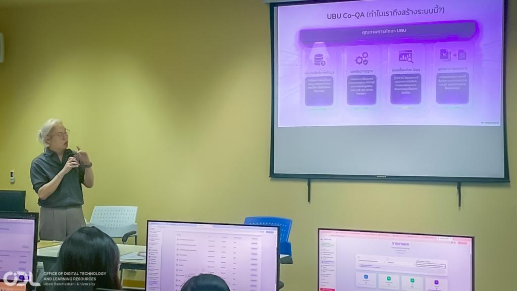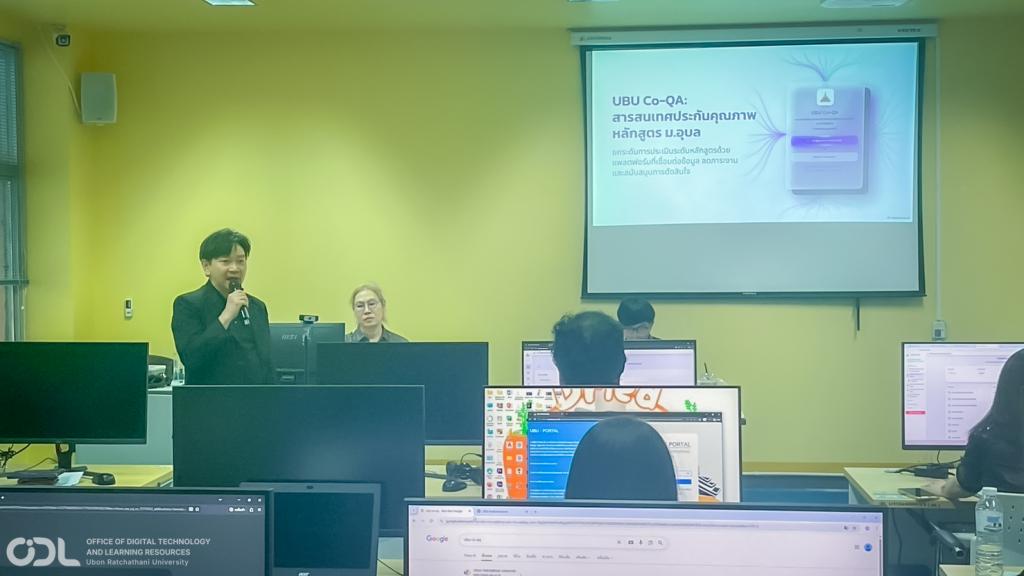 วันที่ 18 มีนาคม 2569 กองแผนงาน ร่วมกับ สำนักเทคโนโลยีดิจิทัลและทรัพยากรการเรียนรู้ (ODL) มหาวิทยาลัยอุบลราชธานี จัดการอบรมเชิงปฏิบัติการเพื่อชี้แจงและซักซ้อมความเข้าใจการใช้งานระบบสารสนเทศเพื่อการประกันคุณภาพการศึกษา "UBU Co-QA" ณ ห้องปฏิบัติการคอมพิวเตอร์ 3C 05-06 อาคารคอมพิวเตอร์และเครือข่าย (ODL1)