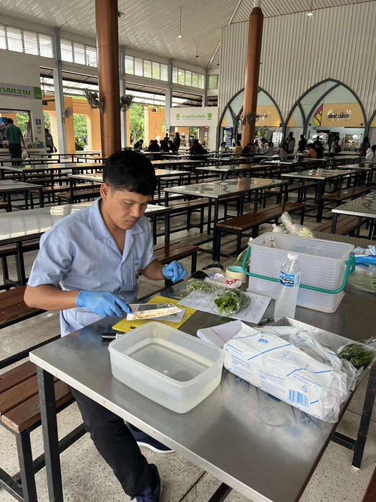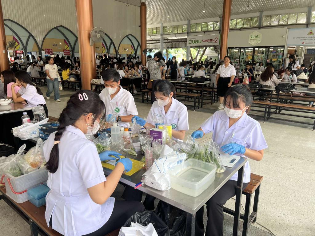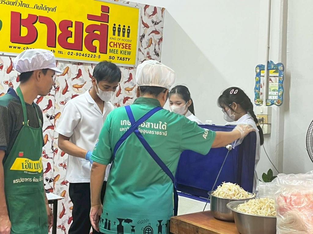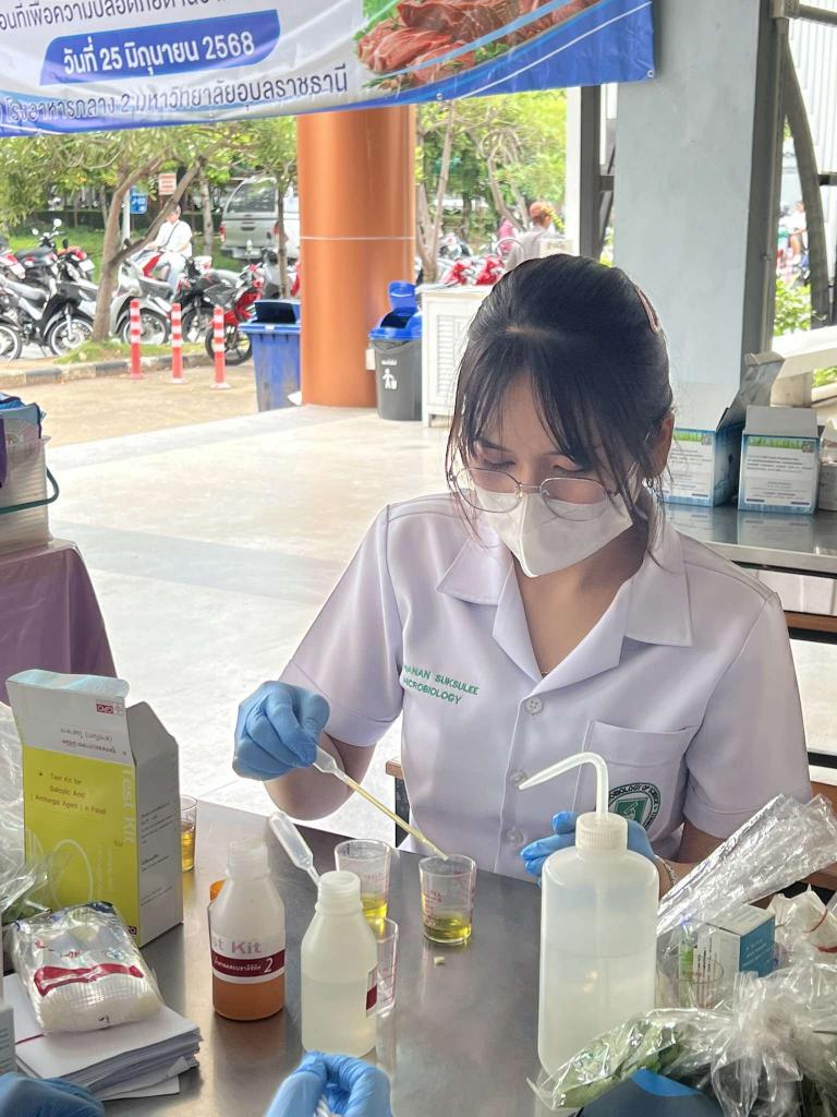 สำนักบริหารทรัพย์สินและสิทธิประโยชน์ มหาวิทยาลัยอุบลราชธานี ร่วมกับ หน่วยเคลื่อนที่เพื่อความปลอดภัยด้านอาหาร เขตสุขภาพที่ 10 จัดโครงการตรวจสารปนเปื้อนในวัตถุดิบประกอบอาหาร โคลิฟอร์มในน้ำและน้ำแข็ง และตรวจน้ำมันทอดซ้ำ ประจำปี 2568 โดยสุ่มเก็บตัวอย่างวัตถุดิบผัก ผลไม้ เนื้อสัตว์ และน้ำแข็งที่ผู้ประกอบการด้านอาหาร อาหารว่างและเครื่องดื่มภายในมหาวิทยาลัย นำมาประกอบอาหารจำหน่าย เพื่อนำมาตรวจสารตกค้างยาฆ่าแมลงในผัก ผลไม้สด และตรวจวิเคราะห์สารปนเปื้อนในอาหาร (บอแรกซ์ ฟอร์มาลดีไฮด์ กรดซาลิซิลิค ไฮโดรซัลไฟต์และสารเร่งเนื้อแดง) สุ่มตรวจโคลิฟอร์มในน้ำแข็ง และสุ่มตรวจน้ำมันทอดซ้ำของร้านอาหารภายในมหาวิทยาลัยอุบลราชธานี เพื่อเฝ้าระวังความปลอดภัยของการใช้น้ำมันทอดอาหาร พร้อมทั้งให้ความรู้แก่ผู้ประกอบการเกี่ยวกับอันตรายจากการใช้น้ำมันทอดซ้ำ ซึ่งจะเป็นการสร้างความมั่นใจให้กับผู้มาใช้บริการ โดยมี นางสาวมนัสดา ชัยสวนียากรณ์ รองผู้อำนวยการสำนักบริหารทรัพย์สินและสิทธิประโยชน์ ให้การต้อนรับ ณ โรงอาหารกลาง 2 มหาวิทยาลัยอุบลราชธานี ในวันที่ 25 มิถุนายน 2568