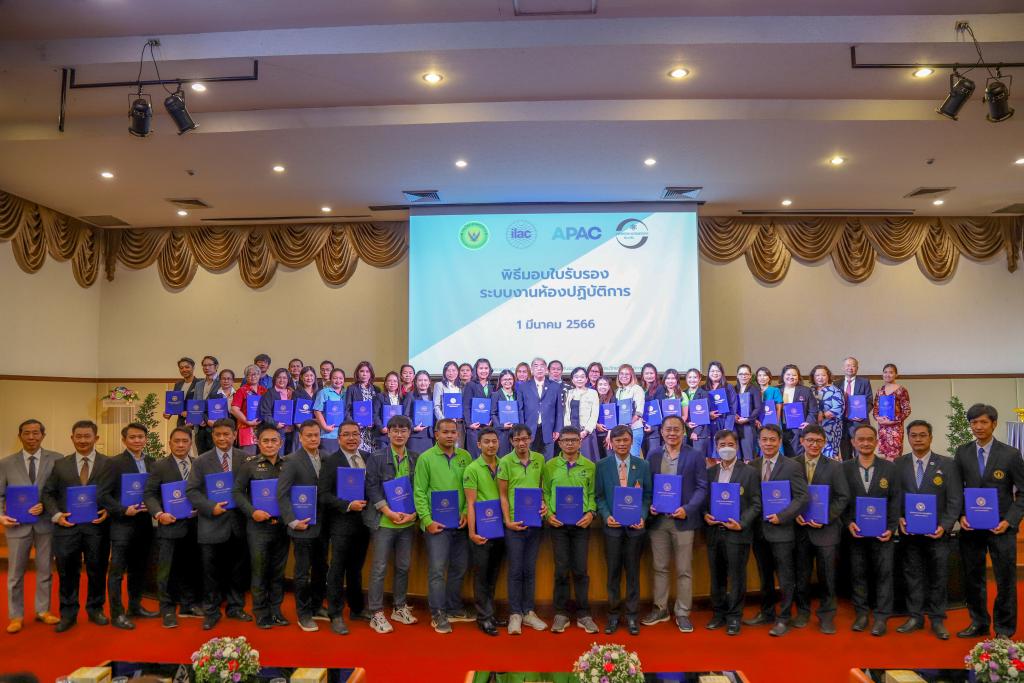 วันที่ 1 มีนาคม 2566 กรมวิทยาศาสตร์บริการ กระทรวงการอุดมศึกษา วิทยาศาสตร์ วิจัยและนวัตกรรม โดย ดร.นพ.ปฐม สวรรค์ปัญญาเลิศ อธิบดีกรมวิทยาศาสตร์บริการ (วศ.) เป็นประธานในพิธีมอบใบรับรองระบบงานห้องปฏิบัติการให้แก่หน่วยงานทั้งภาครัฐและเอกชน ประกอบด้วย ห้องปฏิบัติการทดสอบ , ผู้จัดโปรแกรมการทดสอบความชำนาญห้องปฏิบัติการทดสอบ และผู้ผลิตวัสดุอ้างอิง รวม 53 หน่วยงาน ณ ห้องประชุมภูมิบดินทร์ ชั้น 6 อาคารสถานศึกษาเคมีปฏิบัติ กรมวิทยาศาสตร์บริการ