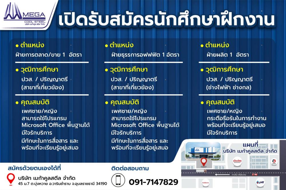 บริษัท เมก้าคูล สตีล จำกัด รับนักศึกษาฝึกงาน