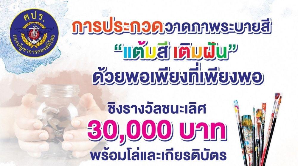 ศูนย์ประสานงานโครงการอันเนื่องมาจากพระราชดำริและความมั่นคง กองบัญชาการกองทัพไทยได้จัดทำโครงการการประกวดวาดภาพระบายสี “แต้มสี เติมฝัน ด้วยพอเพียงที่เพียงพอ” ประจำปี 2565 เพื่อสะท้อนถึงพระราชปณิธานและความตั้งใจนแน่วแน่ ในการทรงงานของพระบาทสมเด็จพระวชิรเกล้าเจ้าอยู่หัว ในการสืบสาน รักษา และต่อยอด โครงการอันเนื่องมาจากพระราชดำริ และหลักปรัชญาของเศรษฐกิจพอเพียง รวมถึงการน้อมสำนึกในพระมหากรุณาธิคุณของพระบาทสมเด็จพระบรมชนกาธิเบศร มหาภูมิพลอดุลยเดชมหาราช บรมนาถบพิตร ที่ทรงอุทิศพระรกายทรงงานอย่างหนัก เพื่อบรรเทาความทุกข์ยาก ความเดือดร้อน แก้ปัญหาให้กับประชาชน และพัฒนาประเทศให้เจริญก้าวหน้า มั่นคง อีกทั้งเป็นการแสดงออกถึงความจงรักภักดีต่อสถาบันพระมหากษัตริย์ อันมีความสำคัญยิ่งต่อแผ่นดินไทย