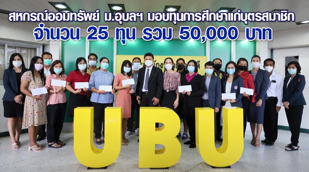สหกรณ์ออมทรัพย์มหาวิทยาลัยอุบลราชธานี จำกัด โดย ผู้ช่วยศาสตราจารย์ ดร.อุทัย อันพิมพ์ ประธานกรรมการ นำคณะกรรมการบริหารและเจ้าหน้าที่ มอบทุนสวัสดิการเพื่อการศึกษาแก่บุตรสมาชิก ประจำปี 2565แบ่งเป็นทุกระดับจำนวน 25ทุนๆ ละ 2,000 บาท รวมเป็นเงินทั้งสิ้น 50,000 บาท เพื่อสร้างขวัญกำลังใจให้กับบุตรสมาชิกในการศึกษาเล่าเรียน ตลอดจนแบ่งเบาภาระให้กับสมาชิก ณ หน้าห้องสำนักงานสหกรณ์ออมทรัพย์มหาวิทยาลัยอุบลราชธานี จำกัด ชั้น 2 อาคารสำนักงานอธิการบดี เมื่อวันที่ 23 มิถุนายน 2565ที่ผ่านมา