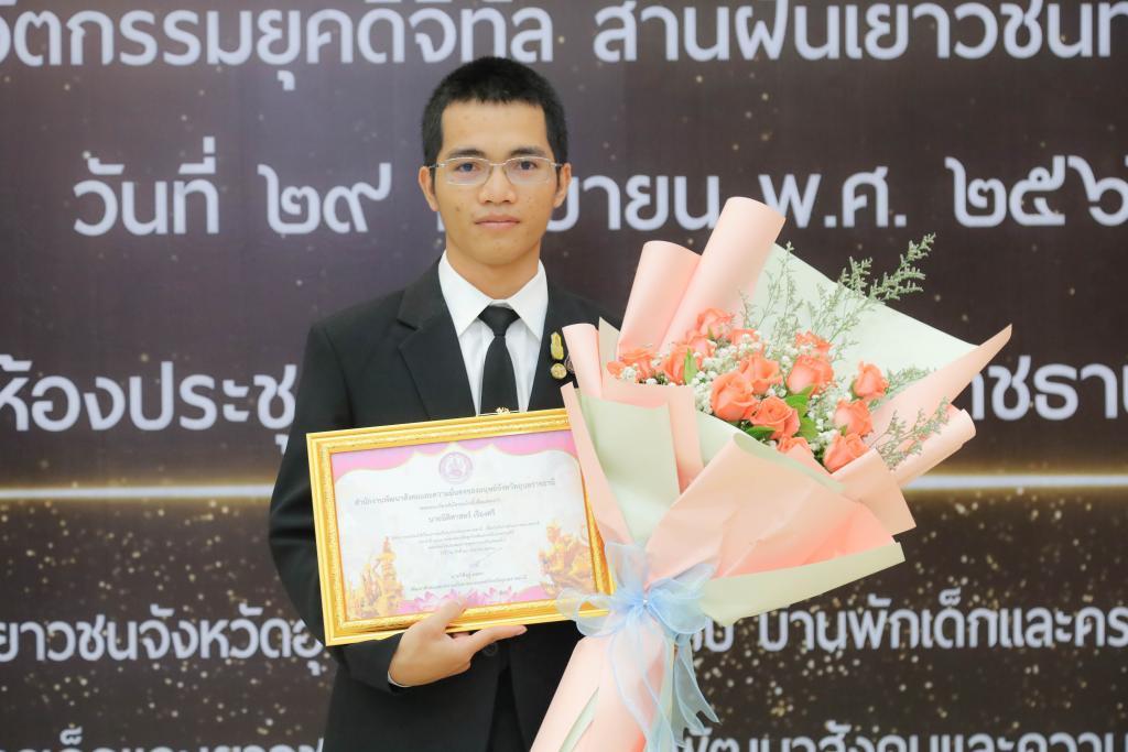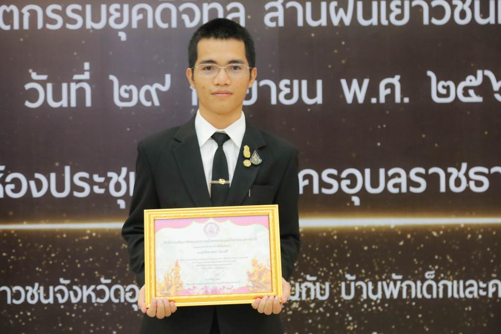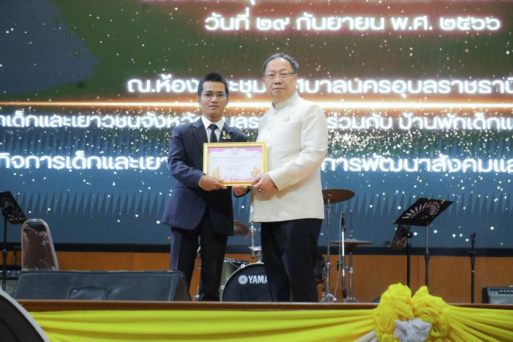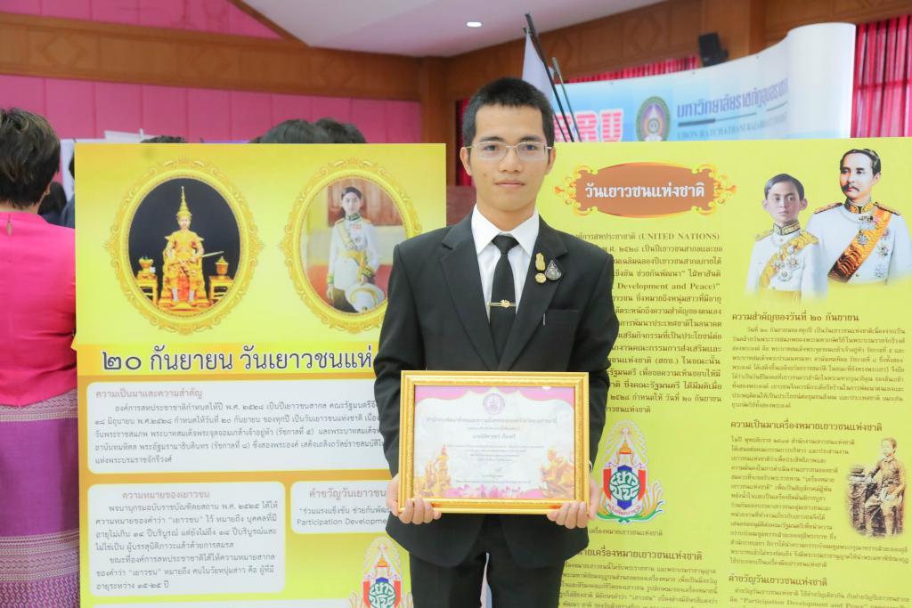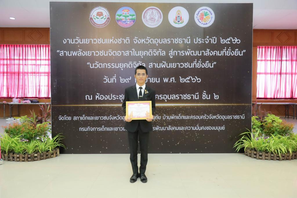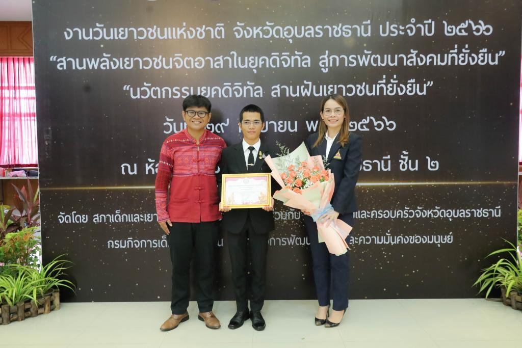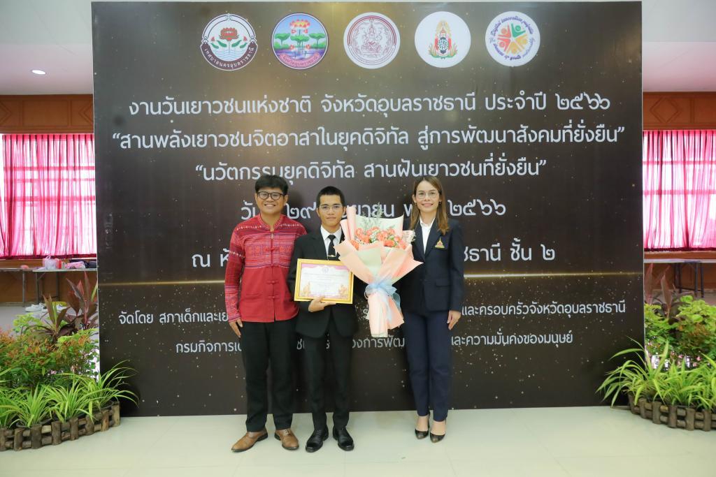 UBU congratulates fourth-year Political Science student Mr. Nitisart Ruangsri for receiving the “Ubon Ratchathani Outstanding Youth Award 2023” for the theme, “Social Development Promotes Children and Youth Participation” at National Youth Day 2023.