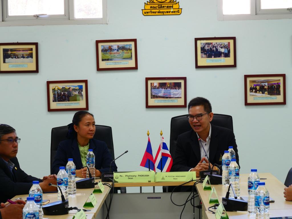 On November 16, 2023, the Dean of the Faculty of Law at Ubon Ratchathani University, Dr. Nitilak Kaewchandee, and his team warmly welcomed Ms. Phatsany Phouvanh, the Dean of the Faculty of Law and Administration at Champasack University, Lao PDR, along with 12 delegates. The purpose of the meeting was to exchange insights on program management, instructional methods for Clinical Legal Education courses, supervising student internships and field trips, writing research papers, and facilitating academic services. This meeting was a valuable opportunity for both parties to enhance their collaboration, ultimately benefiting the students on both ends.