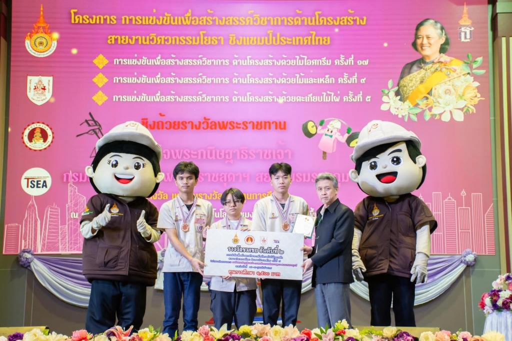 Students from the Department of Civil Engineering at the Faculty of Engineering, Ubon Ratchathani University recently achieved notable success in the academic arena. They received awards in both the 17th Competition for the Creation of Academic Structures using Ice Cream Sticks and the 9th Competition for the Creation of Academic Structures using Wood and Iron. The competition took place at the Rajamangala University of Technology Rattanakosin, hosted by their Faculty of Engineering from February 15-16, 2024.