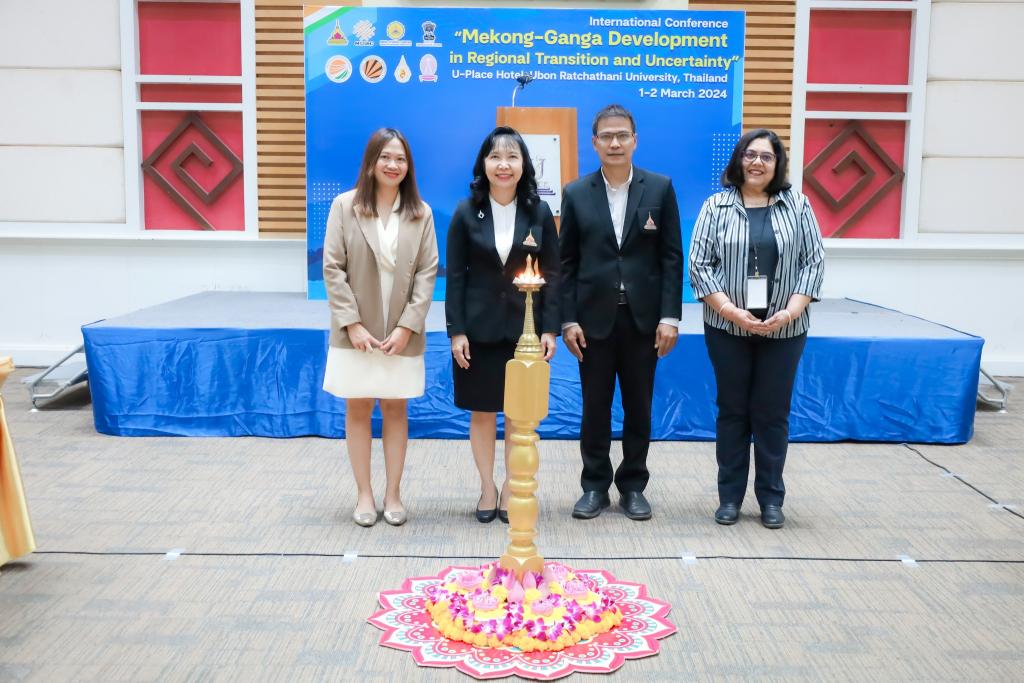 UBU recently hosted an international conference on Mekong-Ganga Development organized by Ubon Ratchathani University's Mekong Sub-region Social Research Center in collaboration with the India Studies Center, the Faculty of Political Science. The conference was titled "Mekong-Ganga Development in Regional Transition and Uncertainty" and occurred March 1-2, 2024, at the U-Place Hotel, Ubon Ratchathani University.