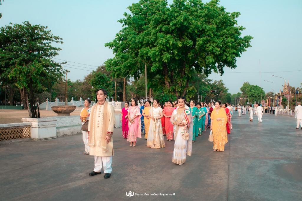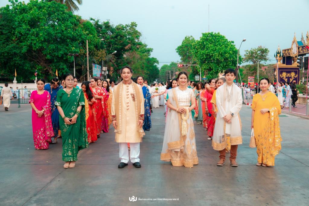 The ceremony began with a dignified ritual and procession, during which UBU actively participated in the "Indian National Cham" parade. The parade aimed to celebrate India's beauty and cultural diversity while paying homage to Lord Buddha along the route from the Great Ganga to the Mekong River. Over 80 individuals, including UBU personnel and members of other sectors, wearing traditional Indian attire joined the procession.