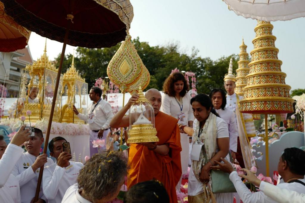 On March 10, 2024, a delegation of Ubon Ratchathani University executives, including President, Assistant Professor Dr. Chutinun Prasitpuriprecha, Vice President for Administration, Assistant Professor Dr. Griengsak Kaewkulchai, and Assistant to the President for Organizational Communication and Social Engagement, Assistant Professor Dr. Piyanat Soikham, along with UBU staff, attended a ceremony at Wat Maha Wanaram. The ceremony was held in honor of the relics of Lord Buddha and his two disciples, Arahant Sariputta and Arahant Maha Moggallana. It was presided over by the Minister of Culture, Mr. Sermsak Pongpanit. Esteemed guests, including Deputy Minister of Interior Mr. Kriang Kantinan and Ubon Ratchathani Province Governor Mr. Supasit Korcharoenyot, were also in attendance.