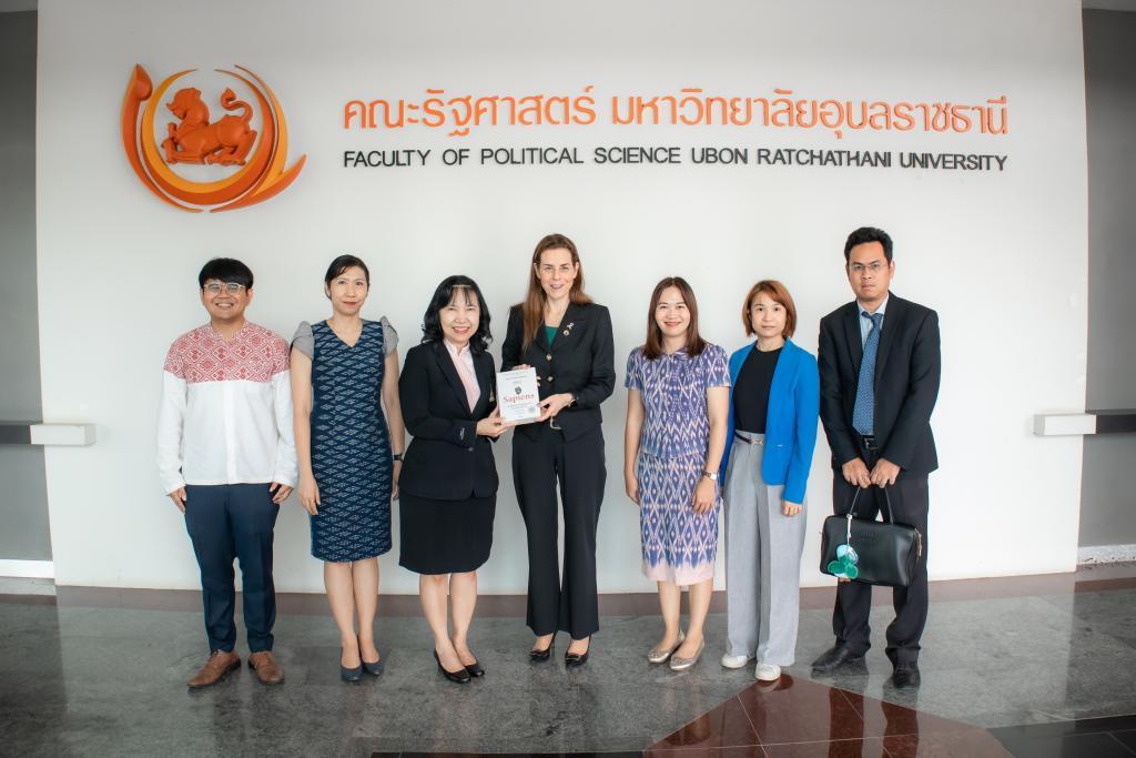 On May 28, 2024, the President of Ubon Ratchathani University, Associate Professor Dr. Chutinun Prasitpuriprecha, along with the Dean of the Faculty of Political Science, Dr. Siriporn Jantanasakulwong, Assistant to the President for Organizational Communication and Social Engagement, Assistant Professor Dr. Piyanat Soikham, and Assistant to the President for International Relations and Education, Assistant Professor Dr. Oranuch Puangsuk, warmly welcomed H.E. Ms. Orna Sagiv, Ambassador of Israel to Thailand, at the Faculty of Political Science, Ubon Ratchathani University.