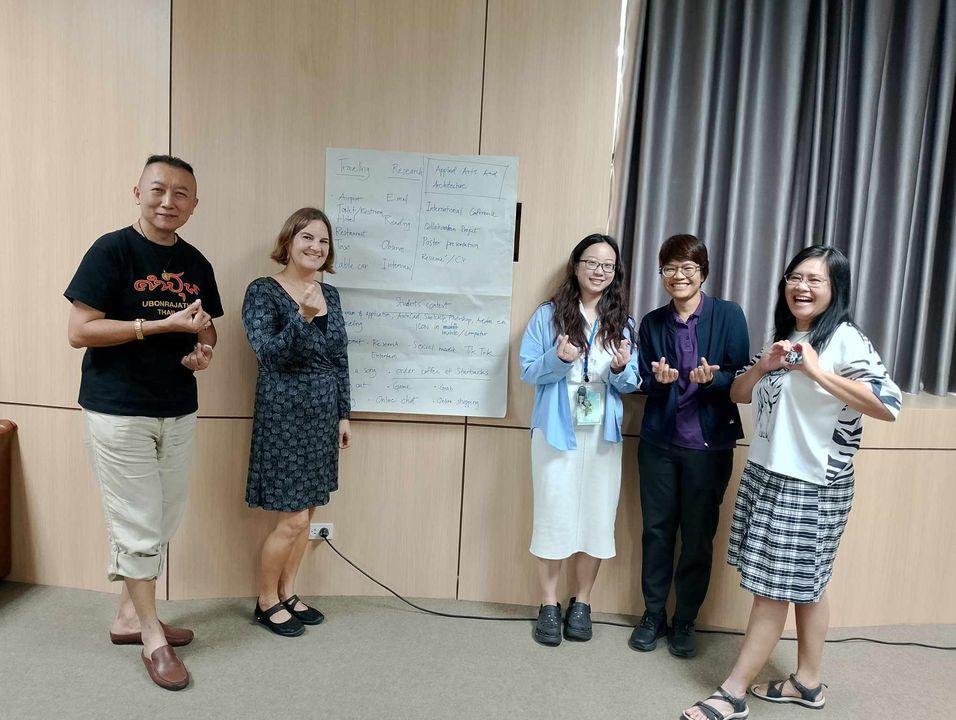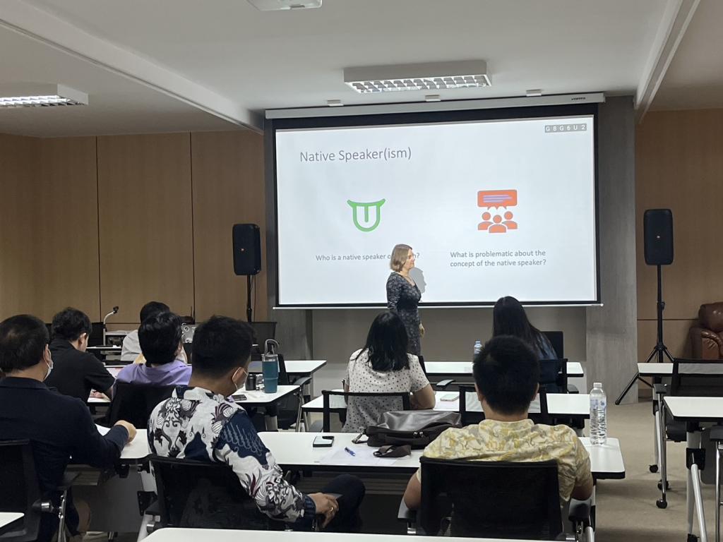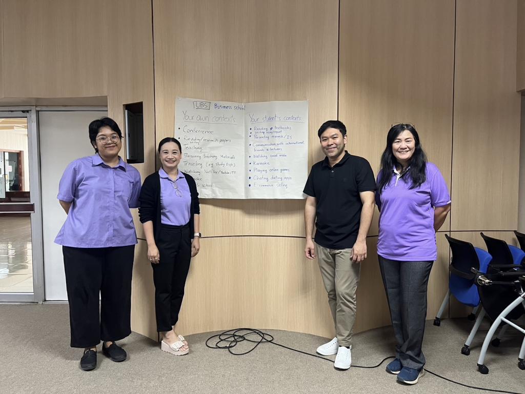 The training focused on providing international teaching knowledge and techniques, including classroom management development and planning. It attracted lecturers from various faculties, such as the Faculty of Agriculture, Faculty of Political Science, Faculty of Science, Faculty of Liberal Arts, Faculty of Applied Arts and Architecture, and Business School. This training was particularly relevant given UBU's current situation, as the number of international students has steadily increased. UBU recognizes the importance of developing the English skills of all staff to prepare students to meet high standards.