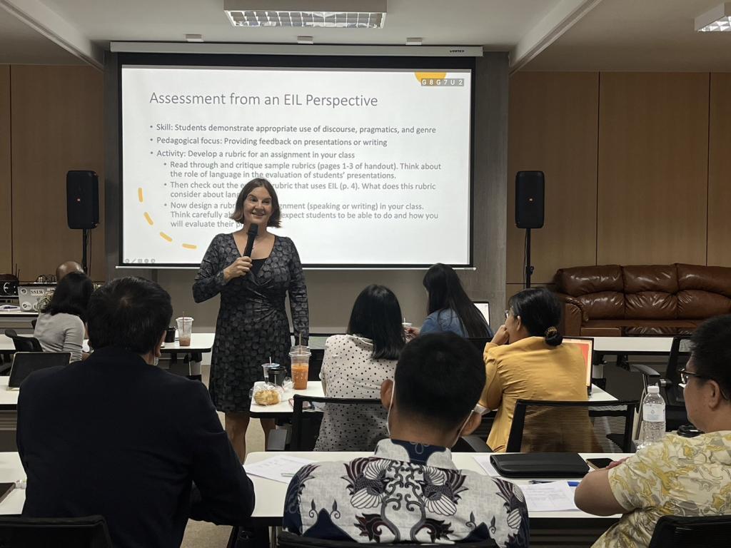 On June 29, 2024, the Office of International Relations at Ubon Ratchathani University (UBU) organized a training session at the Office of the President to enhance the English skills of academic staff. The training, titled "English as an International Language (Series II)," was conducted by Associate Professor Dr. Betsy Gilliland from the Department of Second Language Studies at the University of Hawaii at Manoa, USA.