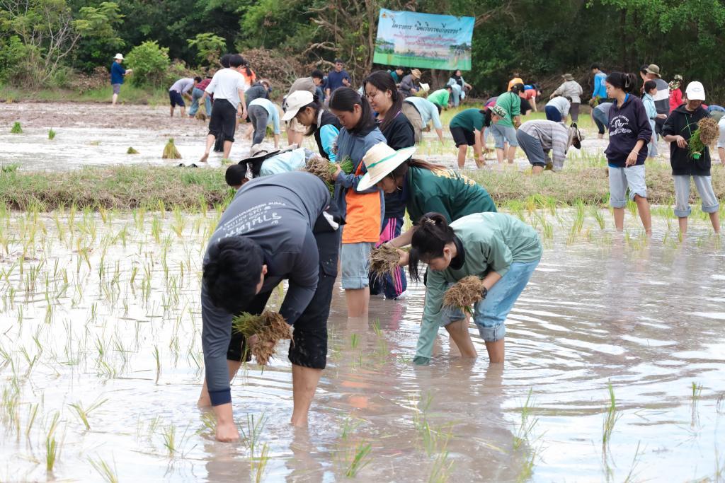 Ms. Kesorn Khamthawon, the head of the project, explained that this annual activity is a tradition passed down through generations and consists of two phases: planting and harvesting. The event aimed to welcome first-year students to the Faculty of Agriculture and teach them farming procedures such as soil preparation, seedling preparation, rice planting, and plant cultivation until the harvest. Additionally, it aimed to build strong relationships between seniors and juniors and promote collaboration with the faculty. The harvested rice would be reserved for the graduate homecoming and support activities for first-year agricultural students in the upcoming year.