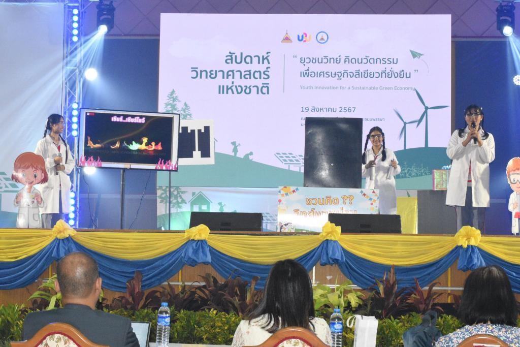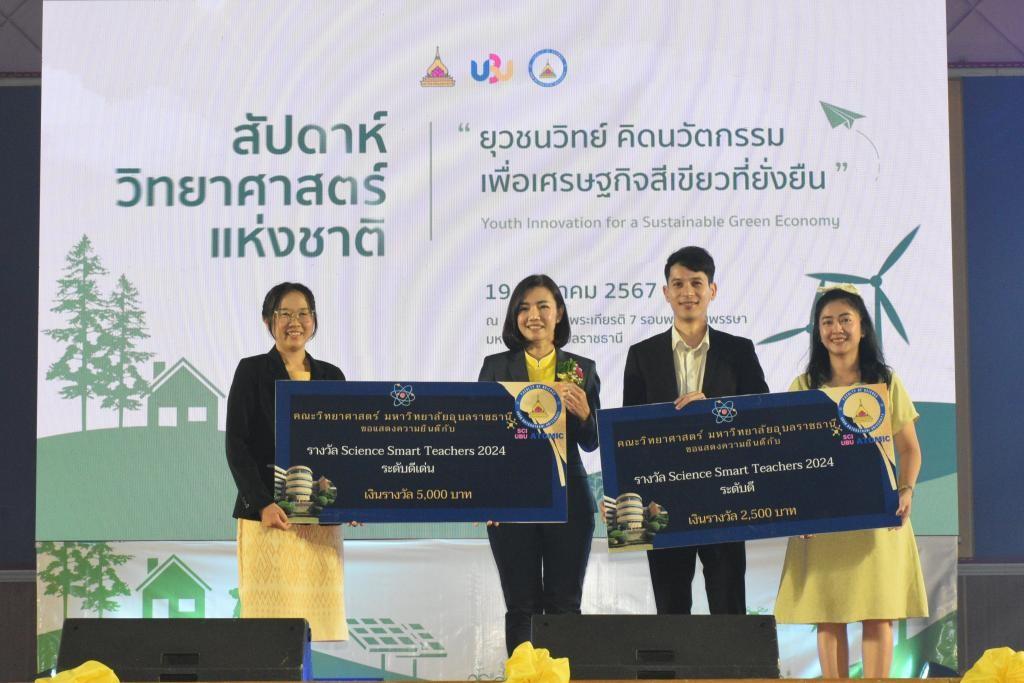 On August 19, 2024, the Faculty of Science at Ubon Ratchathani University (UBU) celebrated National Science Day 2024 with the theme "Youth Innovations for a Sustainable Green Economy. " The event was held at the His Majesty's 7th Cycle Birthday Anniversary Commemorating Building and the Faculty of Science. Mr. Detdanai Sarapho, a student from the Occupational Health and Safety Program, honored His Majesty King Mongkut (King Rama IV), revered as the Father of Science in Thailand. Associate Professor Dr. Chutinun Prasitpuriprecha, the President of Ubon Ratchathani University, presided over the opening ceremony, with Professor Dr. Siriporn Jungsuttiwong, the Dean of the Faculty of Science, delivering remarks.