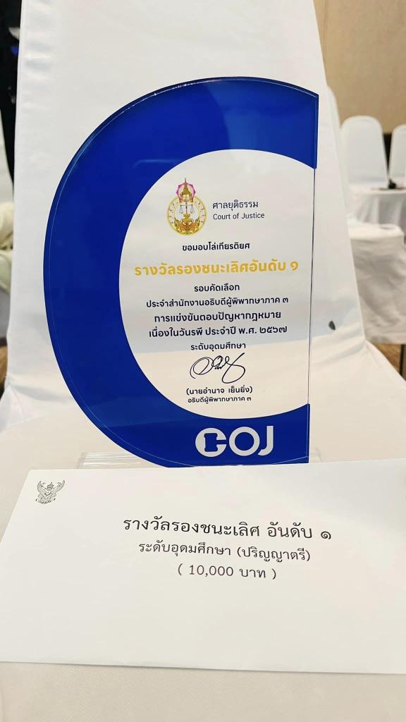 The UBU team achieved an impressive second place, earning the honor of representing Region 3 in the final round in Bangkok. Their success was made possible with the guidance of Ms. Montira Theaprasert Kaewta, a dedicated lecturer at UBU’s Faculty of Law.