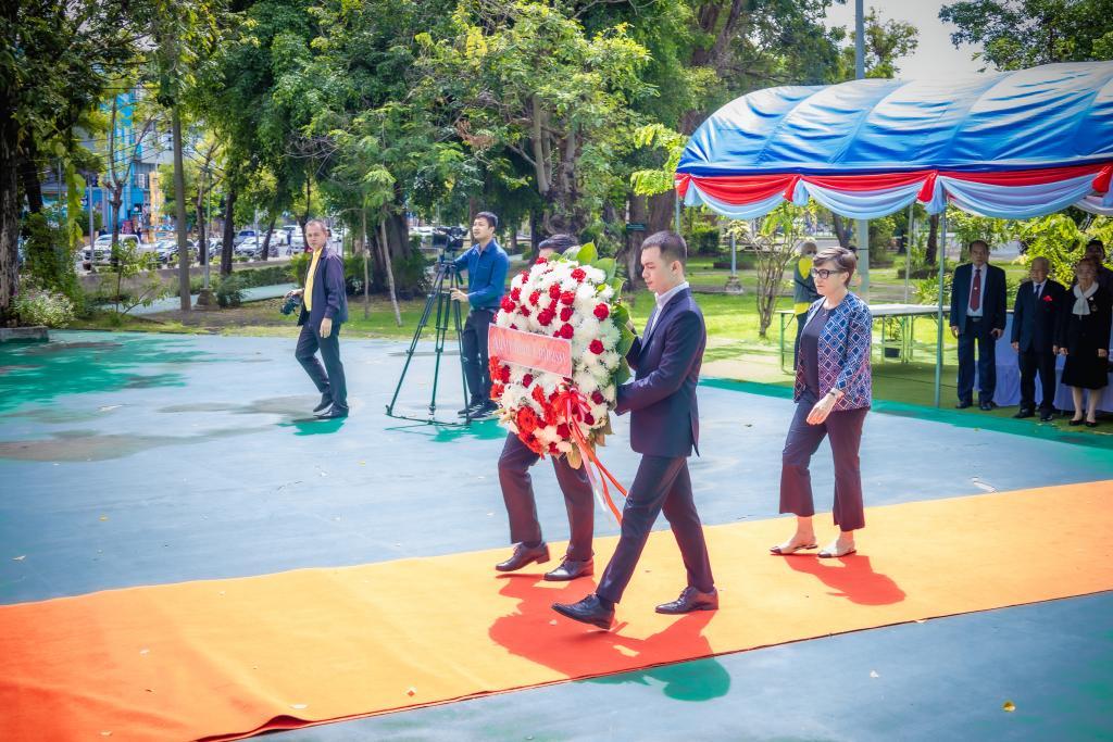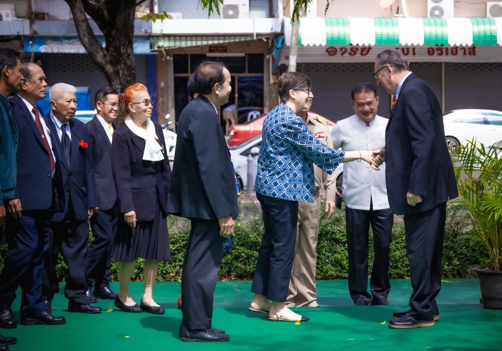 Dr. Angela Macdonald PSM, also participated in a wreath-laying ceremony to honor the compassionate efforts of the Ubon Ratchathani community towards Allied prisoners of war during World War II. The Ubon Ratchathani Provincial Office organized the ceremony at the Monument of Good Deeds, Thung Si Mueang, Ubon Ratchathani Province. The Deputy Governor of Ubon Ratchathani Province, Mr. Sornmongkol Mongklasiri, also attended to extend a warm welcome to the ambassador and her team.