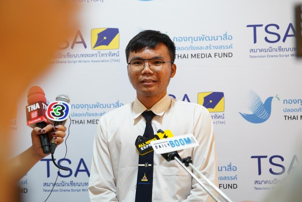 Mr. Kwanchai Manosri, a fourth-year student in Thai and Communication from the Faculty of Liberal Arts, distinguished himself among 24 participants, winning a prize of 10,000 baht for his creative script titled “Pop Zeang Sri” (The Ghost).
