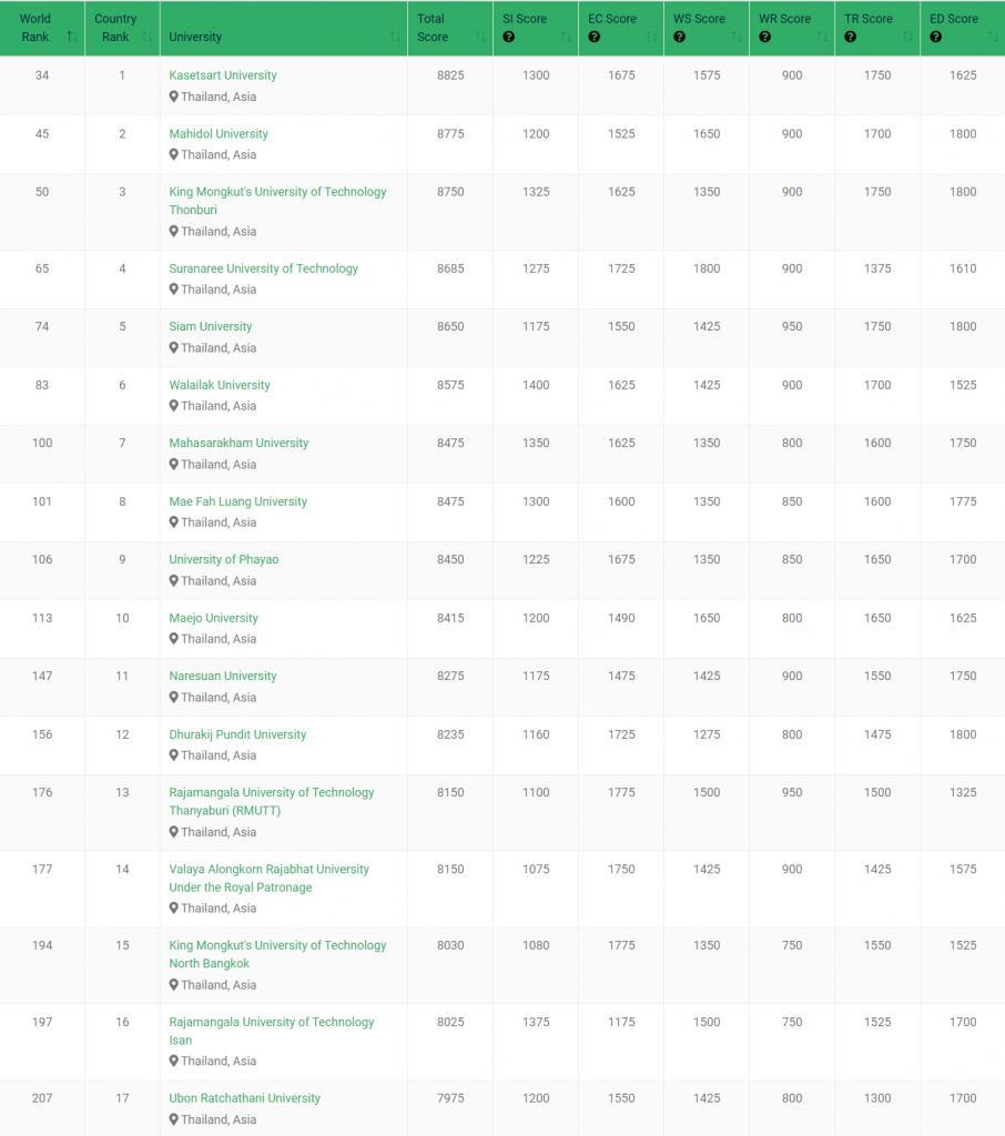 In 2024, UBU demonstrated remarkable progress, advancing to 17th place in Thailand (up from 20th in 2023) and 207th globally (up from 307th in 2023). This improvement reflects the university's sustained efforts in promoting sustainability and environmental stewardship. The top global rank was awarded to Wageningen University & Research in the Netherlands, which achieved an impressive total score of 9,575 points.
