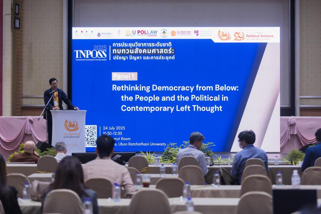 On July 24–25, 2025, Ubon Ratchathani University, through its Faculty of Political Science, in collaboration with the Thai Network of Philosophy and Social Science (TNPOSS), hosted the 3rd National Conference under the theme: “Revisiting Social Sciences: Philosophical Foundations, Applications, and Emerging Challenges” at the U-Place Hotel, Ubon Ratchathani University.