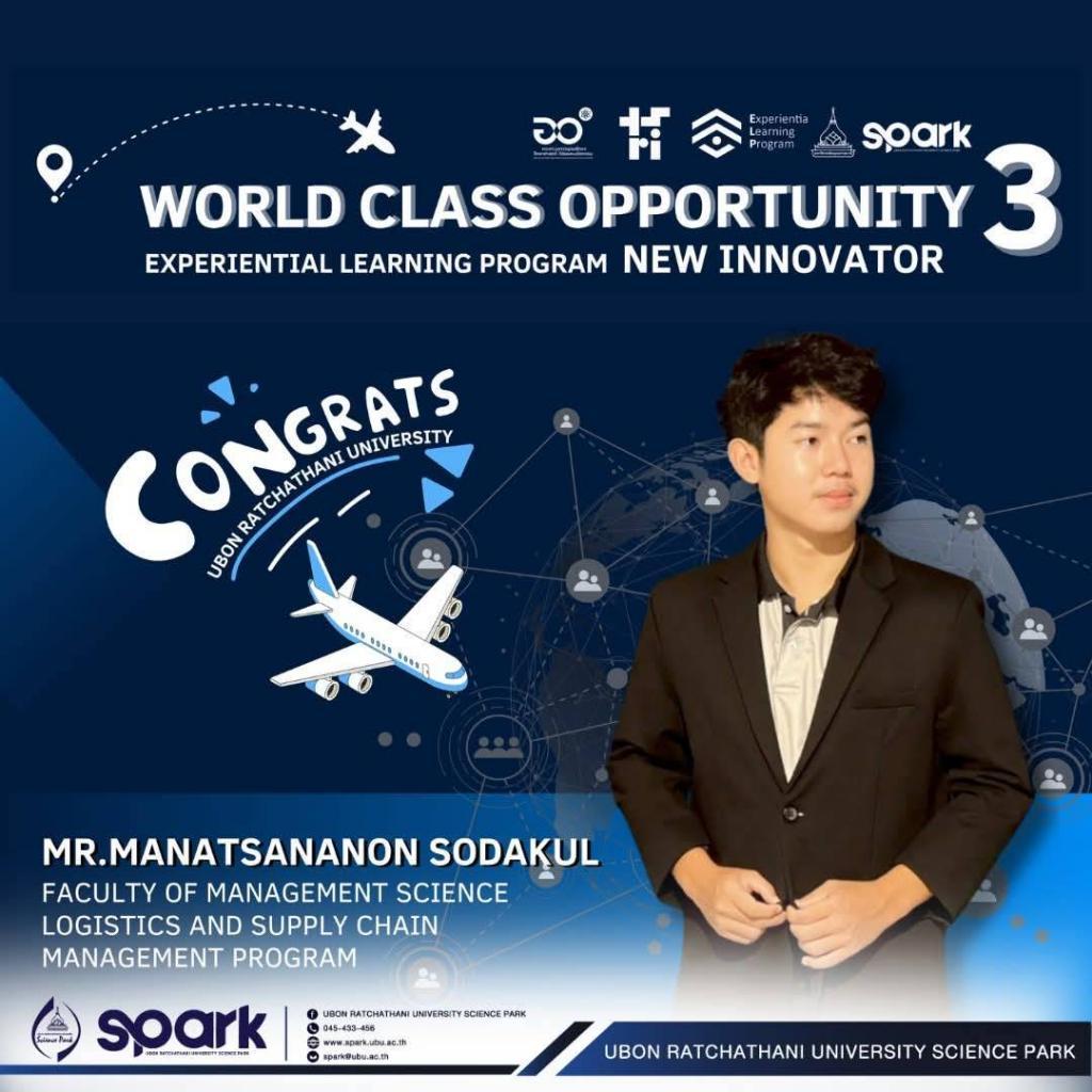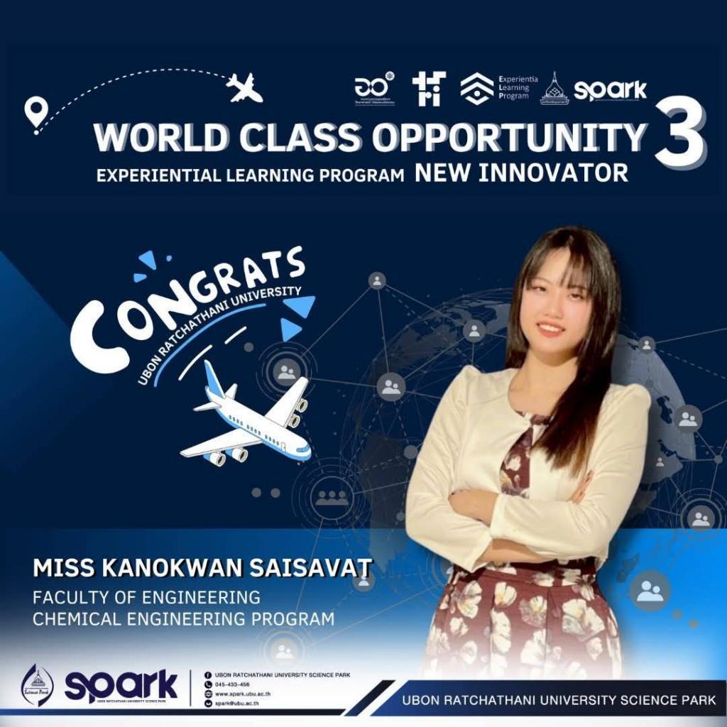 Ubon Ratchathani University (UBU) proudly congratulates Miss Kanokwan Saisavat, a fourth-year student from the Faculty of Engineering, on her selection as one of 38 national representatives for the Experiential Learning Program Season 3 (ELP). Miss Saisavat was selected from a highly competitive pool of 920 applicants across 16 universities nationwide.